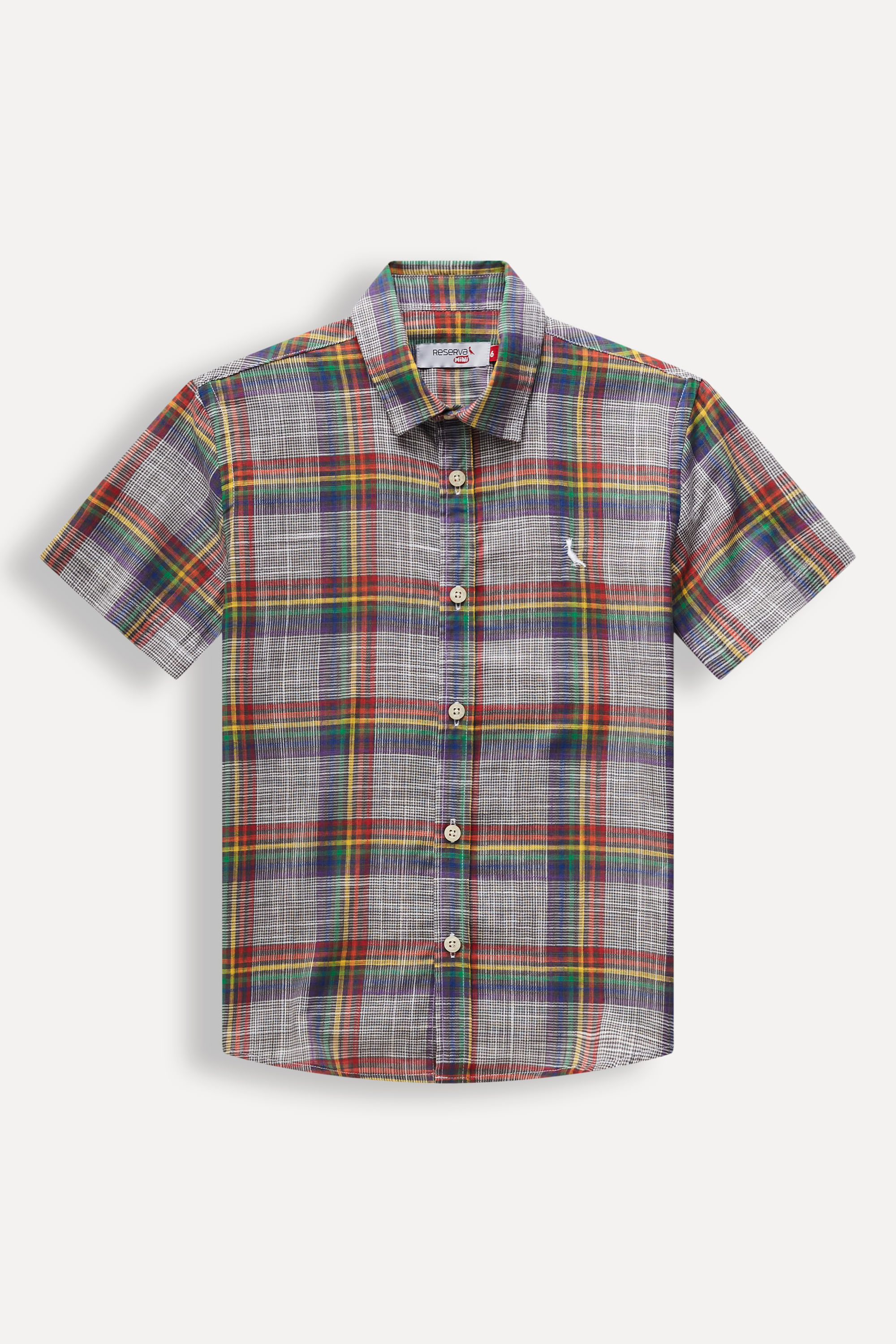 Deixe o Mini sempre arrumadinho com a Camisa Mini MC Max. Feita em algodão de alta qualidade, proporciona muito conforto. Possui manga curta e fechamento frontal por botões. Combine com calças ou bermudas, tênis ou chinelos. Comprando esta peça, você viabiliza cinco pratos de comida através do nosso Programa 1P5P. Camisa produzida eticamente no Brasil.