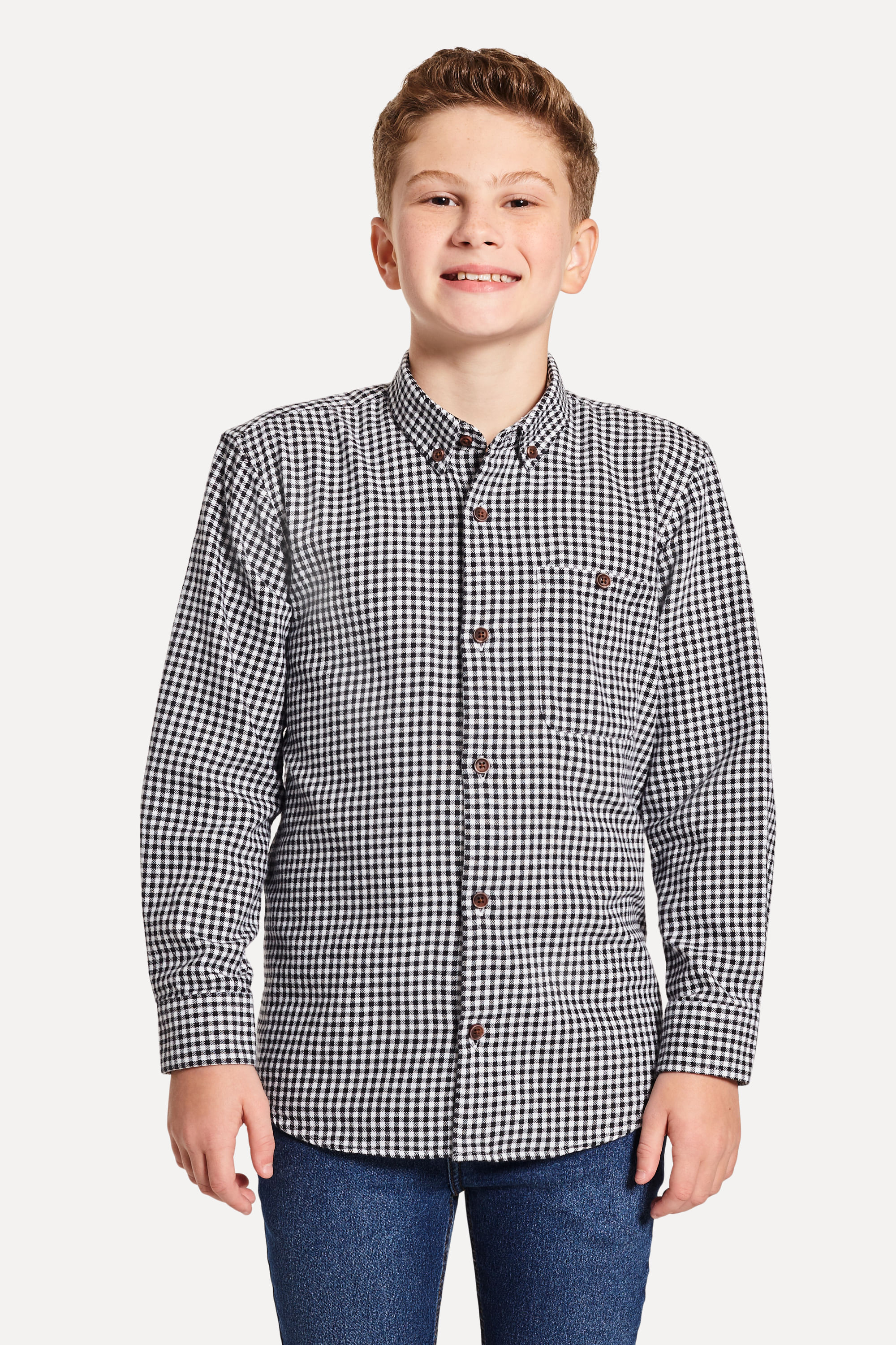 Camisa da Coleção de Verão 25 da Reserva Mini. A peça é confeccionada em flanela fio tinto xadrez vichy 100% algodão. Possui 1 bolsos na frente na altura do busto com fechamento de botão corozo. A assinatura fica por conta do bordado Pica Pau na pala costas. Produzido eticamente no Brasil. Comprando esta peça, você complementa cinco pratos de comida através do nosso programa 1P=5P.
