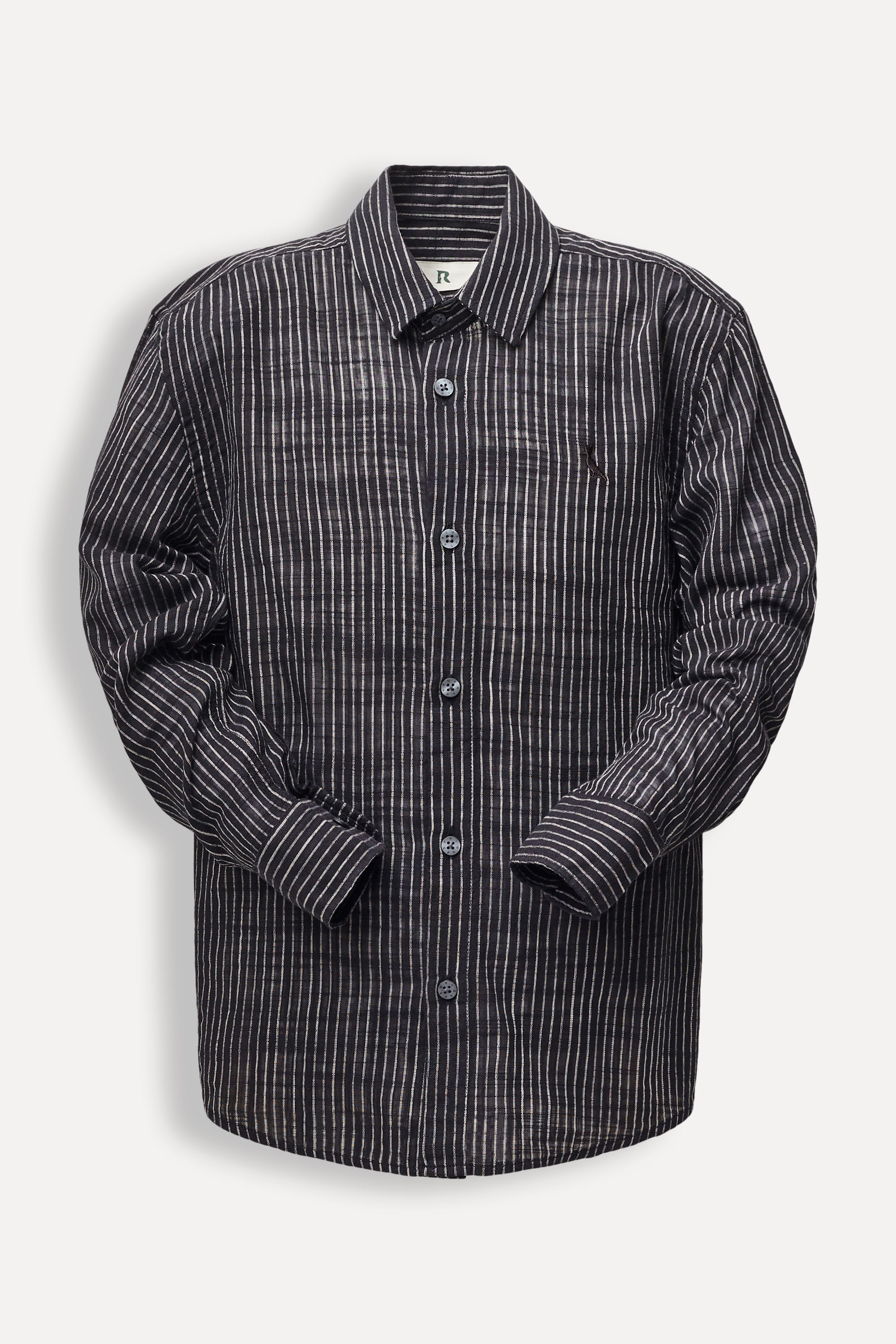 Deixe o Mini sempre arrumadinho com a Camisa Mini ML Listrada. Feita em algodão de alta qualidade, proporciona muito conforto. Possui manga longa e fechamento frontal e nos punhos por botões. Combine com calças ou bermudas e tênis. Comprando esta peça, você viabiliza cinco pratos de comida através do nosso Programa 1P5P. Camisa produzida eticamente no Brasil.