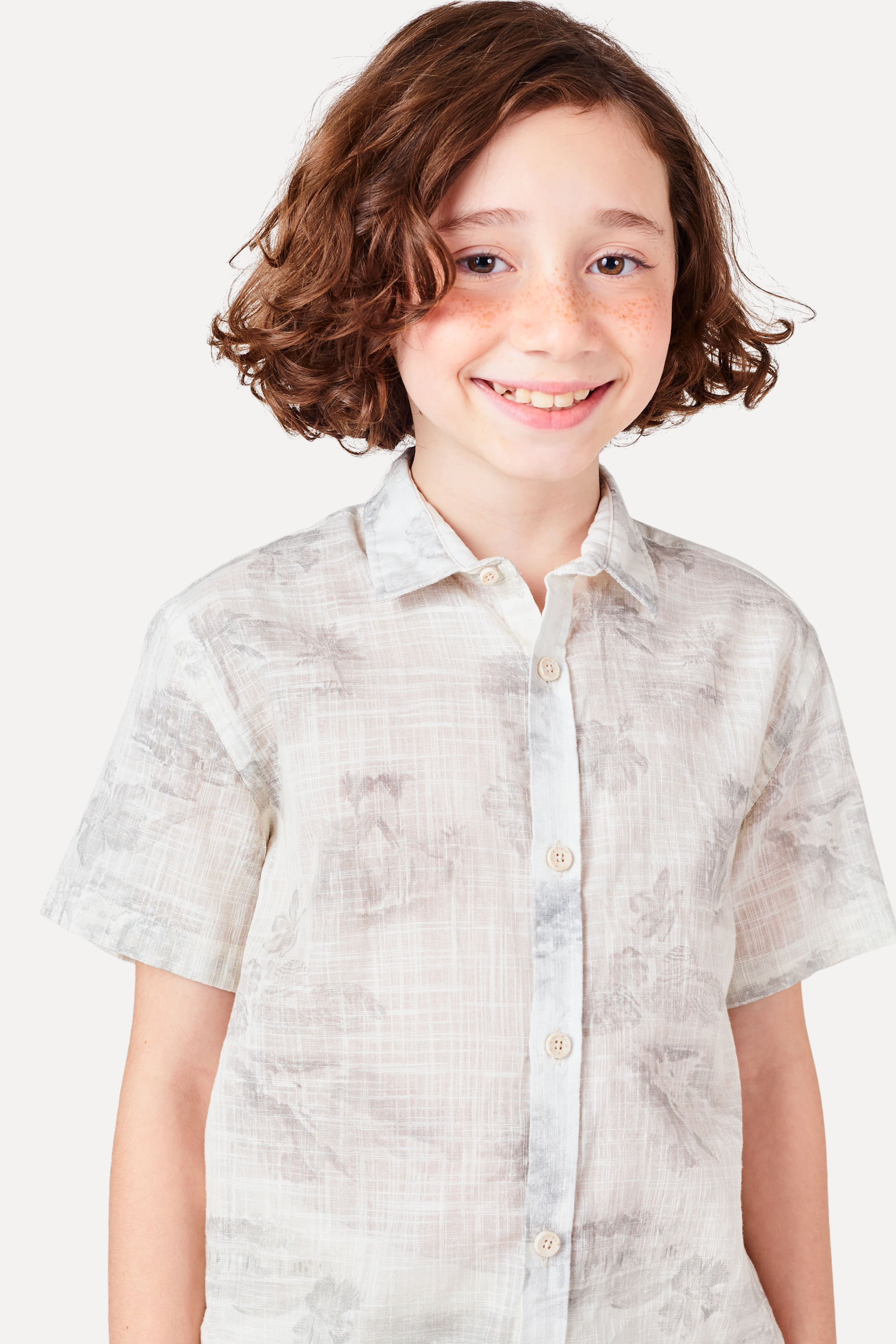 Camisa de manga curta da Coleção Reserva Mini. Confeccionada em tecido 100% algodão na estampa exclusiva "Mare". Possui botões madrepérola na pate, punhos aplicados, bolso no busto com e bainha fraldada.