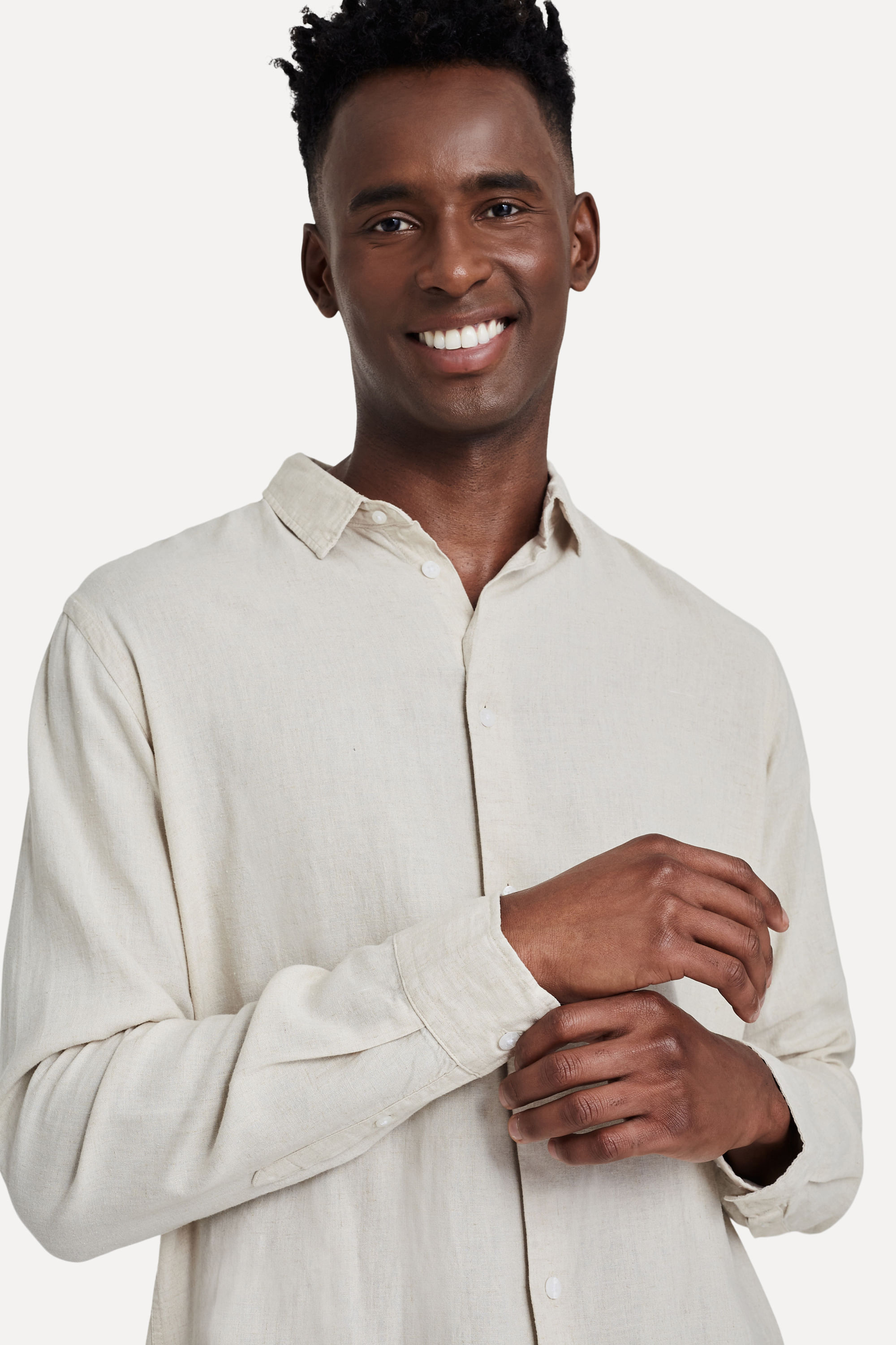 A Camisa ML Trancoso Linho Lisa da Reserva é uma peça versátil e estilosa para compor diversos looks. Com modelagem clássica, ela é confeccionada em linho, um tecido destaque que garante leveza e conforto. Perfeita para os dias mais quentes, essa camisa é ideal para combinar com bermudas ou calças jeans. Seu diferencial técnico está na qualidade do linho, que proporciona maior durabilidade e resistência. Aposte nessa camisa para um visual despojado e cheio de personalidade. O modelo tem 1,89 de altura, 96 de tórax e veste 40. Comprando esta peça, você viabiliza cinco pratos de comida através do nosso Programa 1P5P. Produto produzido eticamente no Brasil.