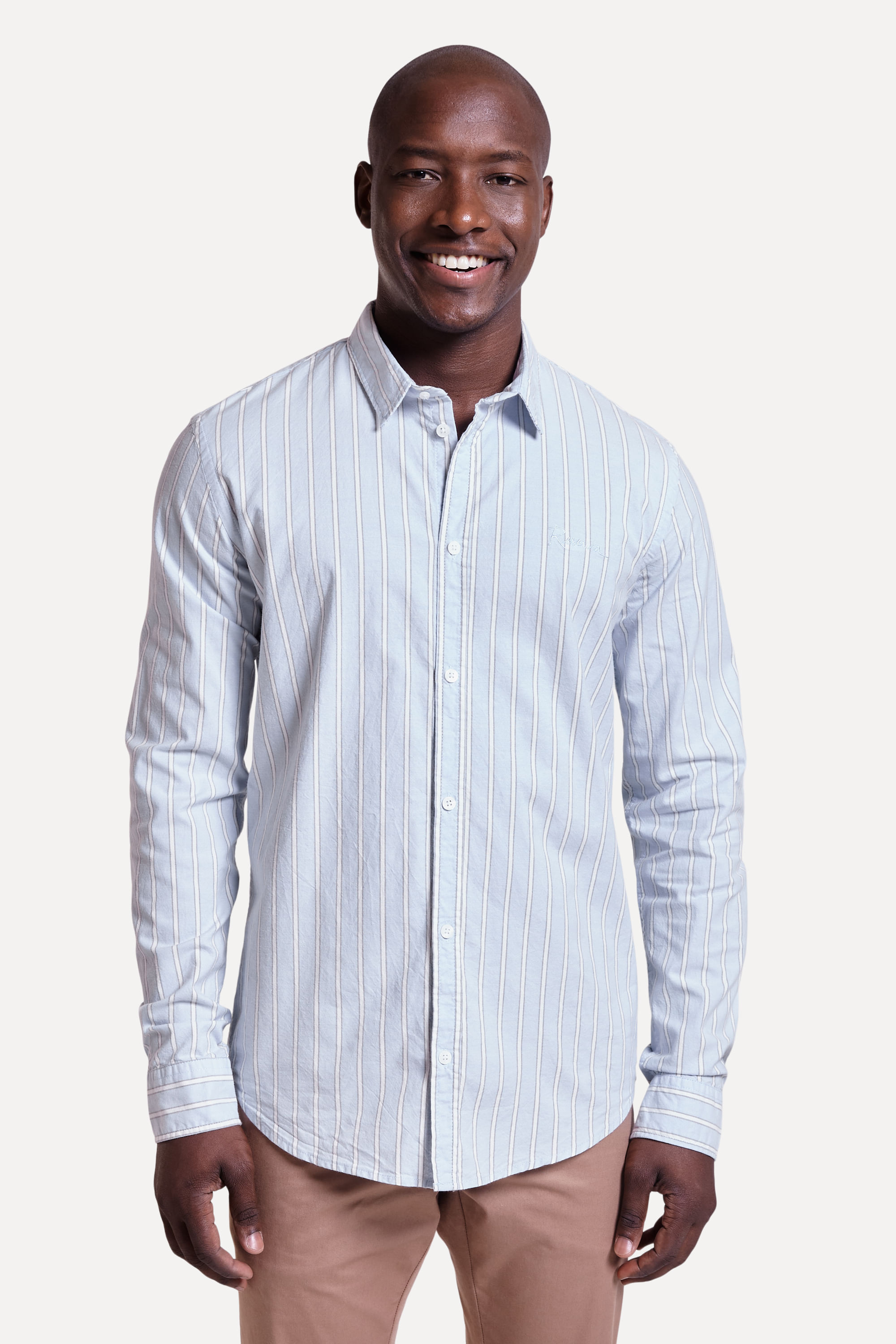 Um clássico da Reserva, a camisa manga longa Oxford tem modelagem slim, levemente ajustada ao corpo. Agora em um tecido listrado confeccionado em elastano, ela dá mais conforto e estilo a quem busca criar um visual mais tradicional. A gola button down é um charme à parte. Pra fechar com chave de ouro, ela conta com bordado exclusivo no peito. Camisa Reserva produzida eticamente no Brasil. Comprando esta peça, você viabiliza cinco pratos de comida através do nosso programa 1P5P.