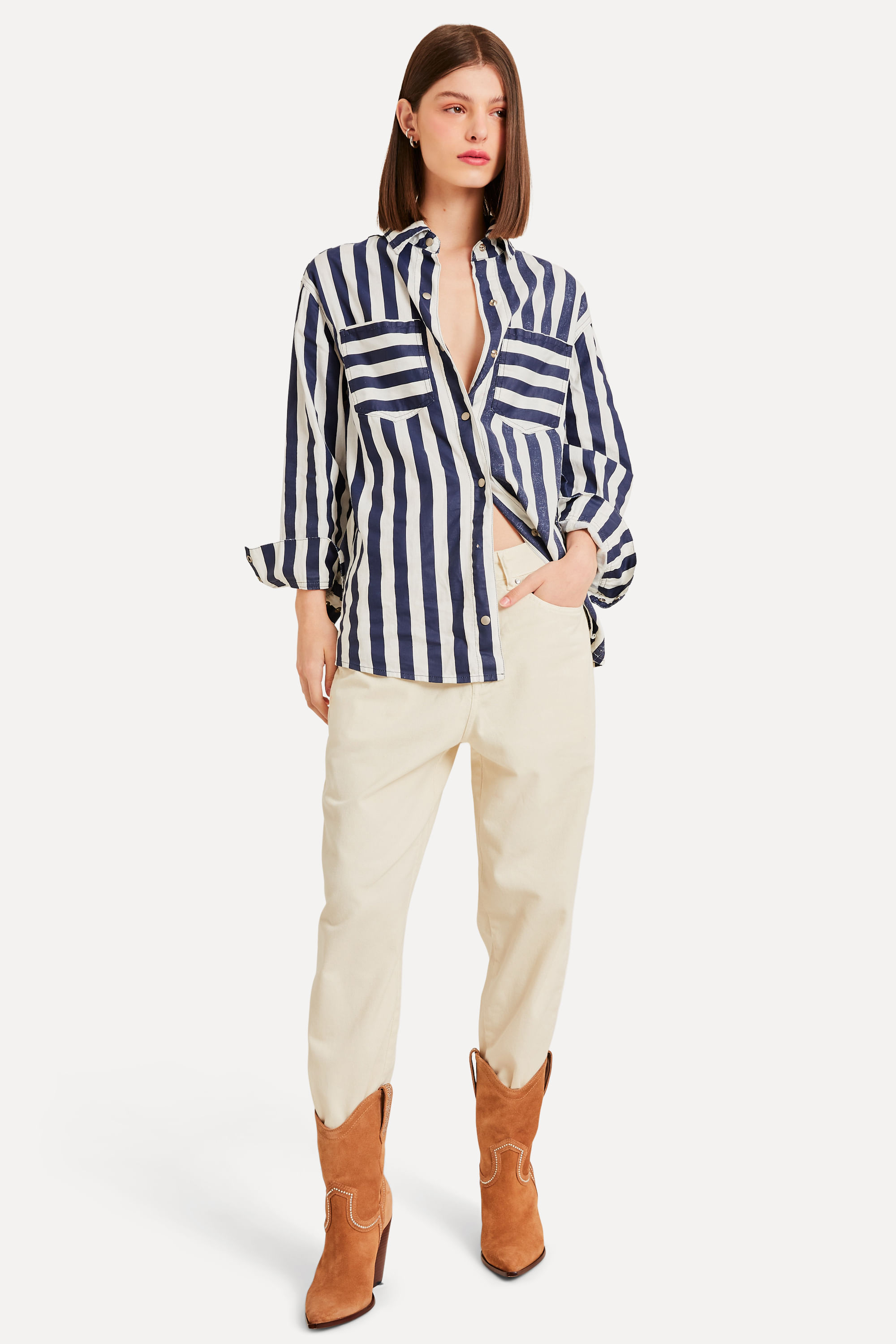 A Camisa Sarja Stripes da Reversa é a peça perfeita para compor um visual casual e despojado. Com modelagem ampla e manga longa, ela oferece conforto e liberdade de movimento. O tecido destaque é o Pilar, conhecido pela sua durabilidade e resistência. Além disso, essa camisa pode ser usada como sobreposição, coordenando com outras peças listradas da coleção. Seja para um passeio no parque ou um happy hour com os amigos, essa camisa é a escolha certa. Aproveite os diferenciais técnicos desse produto e garanta estilo e qualidade para o seu guarda-roupa. A modelo tem 1,78 de altura e 83 de busto. Comprando esta peça, você viabiliza cinco pratos de comida através do nosso Programa 1P5P. Produto produzido eticamente no Brasil.