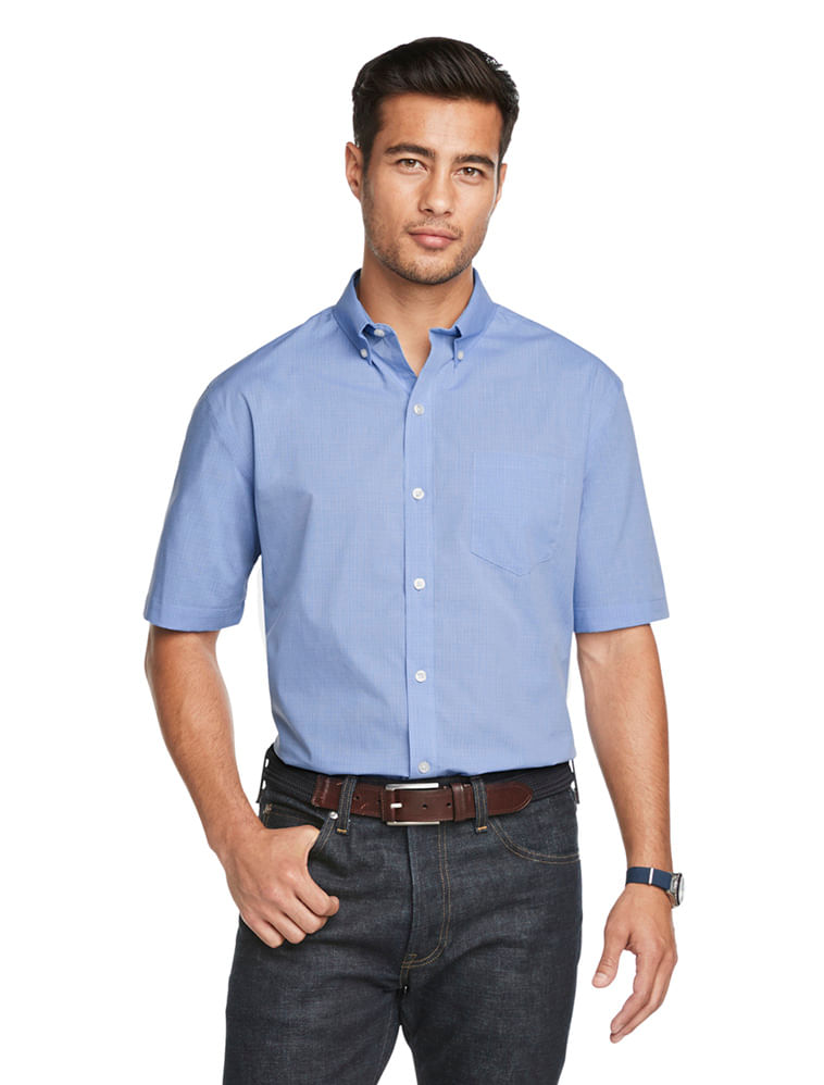 A camisa manga curta em textura xadrez azul claro da VAN HEUSEN tem uma modelagem regular, colarinho com a tecnologia collar flex , com um bolso chapado no peito .Tem algodão em sua composição que a torna super confortável, respirável, fácil de lavar e secar. Tem tecnologia easy iron, ou seja quase não amassa. Faz parte da linha traveller : ótima opção para levar na mala para uma viagem de negócios.