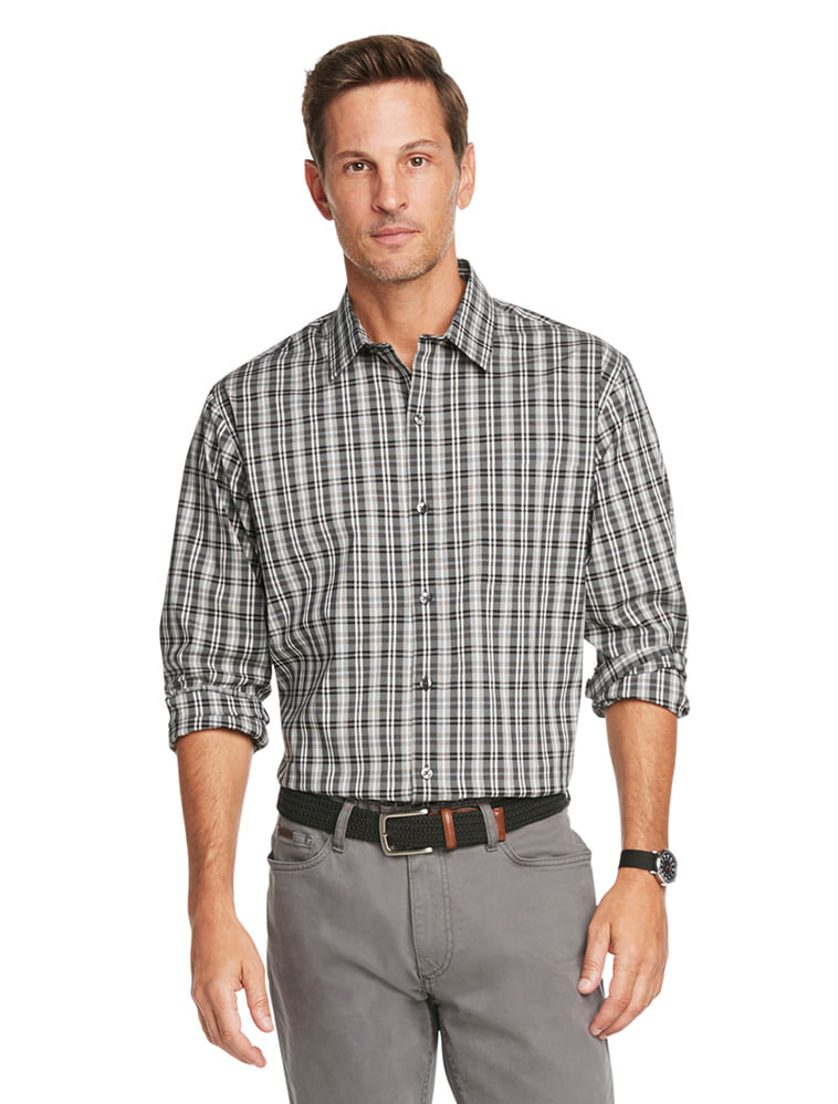 A camisa manga longa em xadrez preto e branco da VAN HEUSEN tem uma modelagem regular, com um bolso chapado no peito .Tem algodão em sua composição que a torna super confortável, respirável, fácil de lavar e secar. Tem tecnologia easy iron, ou seja quase não amassa. Faz parte da linha traveller : ótima opção para levar na mala para uma viagem de negócios.