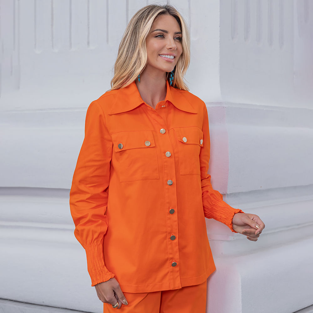 A Camisa Utilitária Sarja possui modelagem alongada, bolsos frontais alongados com botões de metal dourado, frente com abotoamento frontal e botões de metal, possui punhos de lastex (elásticos) e colarinho alongado; Existem várias maneiras de usar a camisa utilitaria de sarja. Para um look casual, pode ser combinado com uma calça jeans skinny ou shorts jeans para um visual descontraído, adicionando uma regata branca embaixo; Para uma combinação elegante, use a camisa utilitária como uma sobreposição sobre um vestido midi ou longo; Uma tendência de moda atual para a camisa utilitária de sarja é o estilo oversized ou superdimensionado; Para obter um efeito oversized, combine com shorts jeans ou calças cargo folgadas para um visual descontraído, dobre as mangas da camisa para um toque de estilo despojado; Complete o look com tênis ou botas de cano curto para um toque casual;<br>.<br>Produto: Camisa Utilitaria Sarja Laranja <br>Categoria: Camisa<br>Cor: Laranja <br>Manga: Longa<br>Gola: Gola Camisa<br>Tecido: Sarja <br>Composição: 68% Algodão, 29% Poliamida, 3% Elastano<br>Peso : 300g<br>Gênero: Feminino<br>Marca: Vértice<br><br>Medidas da Modelo<br>Altura: 1,75 cm<br>Busto: 83 cm<br>Cintura: 67 cm<br>Quadril: 100 cm<br>A MODELO VESTE O TAMANHO P<br>.<br>Medidas.<br>P - Busto até 90 cm l Cintura até 71 cm l Quadril até 99 Cm.<br>M - Busto até 96 cm l Cintura até 77 cm l Quadril até 102 cm.<br>G - Busto até 102 cm l Cintura 83 cm l Quadril 111 cm.<br>GG - Busto 108 cm l Cintura até 89 cm l Quadril até 117 cm.<br>EGG - Busto até 114 cm l Cintura até 95 cm l Quadril até 123 cm.<br><br><br><br><br><br><br><br><br><br><br><br><br><br><br><br><br><br><br><br><br><br>