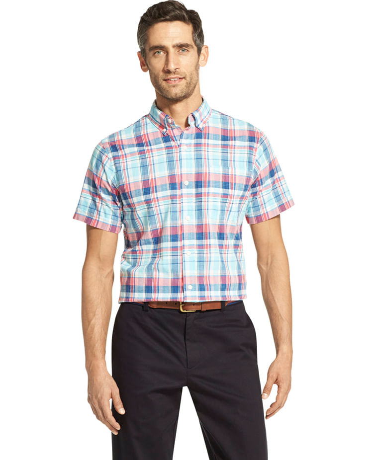 A camisa maxi xadrez manga curta em azul marinho, rosa e azul claro da IZOD tem uma modelagem regular, com abotoamento button-down no colarinho é uma excelente opção para o dia dia de homens modernos. Excelente opção para os dias quentes , para o dia a dia do trabalho como também em looks mais casuais. Tem algodão em sua composição e com grande absorção de umidade. Respirável, fácil de lavar e secar.