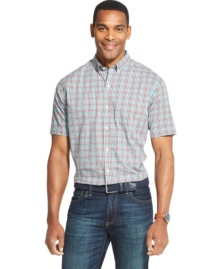 A camisa manga curta xadrez azul claro da VAN HEUSEN tem uma modelagem regular, com um bolso chapado no peito , e com abotoamento button-down no colarinho .É uma excelente opção para um look casual em dias quentes. Para o trabalho e fins de semana . Tem algodão em sua composição que a torna super confortável, respirável, fácil de lavar e secar .
