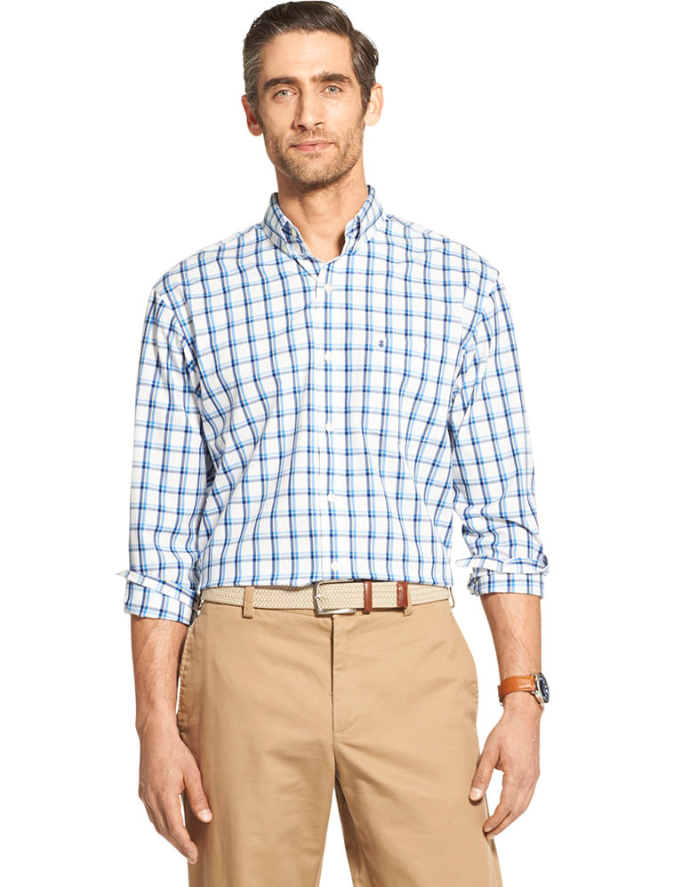 A camisa em xadrez manga longa em azul e branco da IZOD tem uma modelagem regular, com abotoamento button-down no colarinho é uma excelente opção para o dia dia de homens modernos e despojados. Em um xadrez clássico e atemporal e numa coloração que funciona bem no dia a dia do trabalho como também em looks mais casuais. É fabricada em 100% algodão , o que a torna super confortável, fácil de lavar e secar.