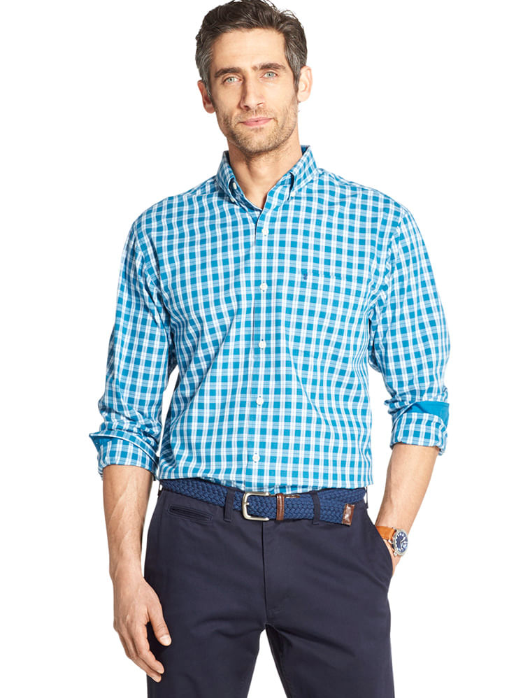 A camisa manga longa xadrez azul petróleo da IZOD tem uma modelagem regular, com um bolso chapado no peito , e com abotoamento button-down no colarinho . Tem o pé de gola e punhos internos em contraste. É uma camisa essencial para o homem moderno, e uma peça chave para o dia a dia do trabalho e para os finais de semana .É fabricada em 100% algodão , e como toda fibra natural , a torna super confortável, respirável, fácil de lavar e secar .