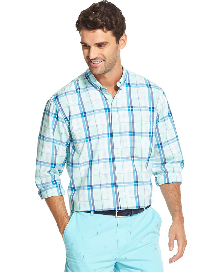 A camisa em maxi xadrez manga longa em verde água e fundo azul claro da IZOD tem uma modelagem regular, com abotoamento button-down no colarinho é uma excelente opção para o dia dia de homens modernos e despojados. Em um xadrez atual que funciona bem no dia a dia do trabalho como também em looks mais casuais. É fabricada em 100% algodão , o que a torna super confortável, fácil de lavar e secar.