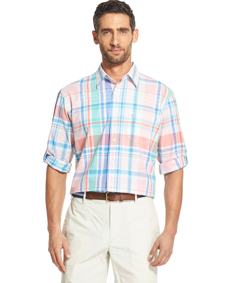 A camisa em maxi xadrez manga longa rosa e detalhes em azul e verde agua da IZOD tem uma modelagem regular, com abotoamento button-down no colarinho é uma excelente opção para o dia dia de homens modernos. Vêm com martingales nas mangas , que permite usá-la com as mangas dobradas. Em um xadrez atual que funciona bem no dia a dia do trabalho como também em looks mais casuais. É fabricada em 100% algodão , o que a torna super confortável, fácil de lavar e secar.