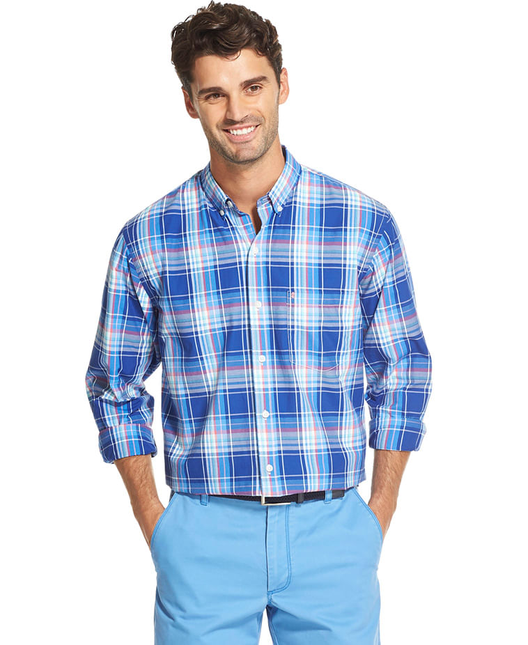 A camisa em maxi xadrez manga longa em azul marinho com fundo azul claro da IZOD tem uma modelagem regular, com abotoamento button-down no colarinho é uma excelente opção para o dia dia de homens modernos e despojados. Em um xadrez atual que funciona bem no dia a dia do trabalho como também em looks mais casuais. É fabricada em 100% algodão , o que a torna super confortável, fácil de lavar e secar.