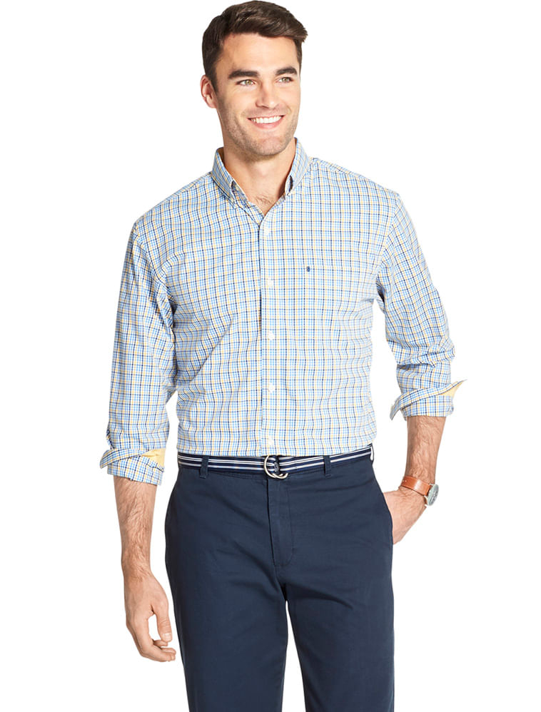 A camisa manga longa em xadrez amarelo e azul da IZOD tem uma modelagem regular, com um bolso chapado no peito , e com abotoamento button-down no colarinho O pé de gola e os punhos internos são em contraste .É uma camisa despojada , casual mas pode facilmente ser usada no dia a dia do trabalho . Em 100% algodão , e como toda fibra natural , a torna super confortável, respirável, fácil de lavar e secar .