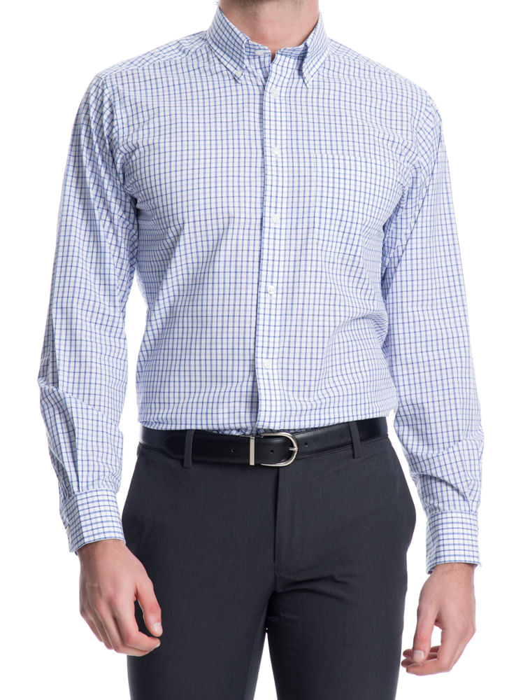 A camisa manga longa em xadrez azul da IZOD tem uma modelagem regular, com um bolso chapado no peito , e com abotoamento button-down no colarinho .É uma camisa despojada , casual mas pode facilmente ser usada no dia a dia do trabalho .Com elastano em sua composição , a torna super confortável Facil de lavar e secar .
