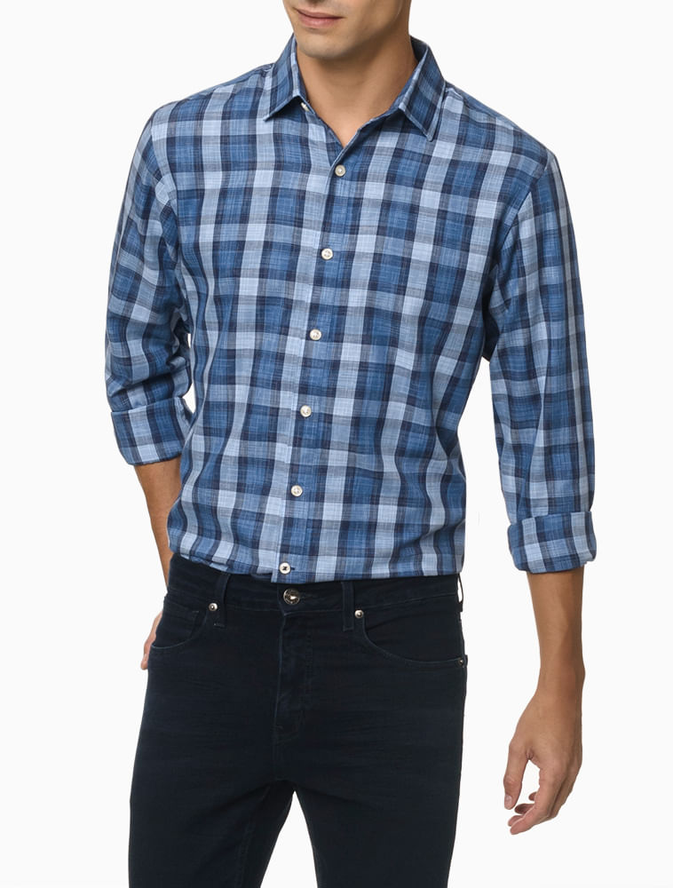 Camisa Xadrez Manga Longa Regular Masculina Azul Izod