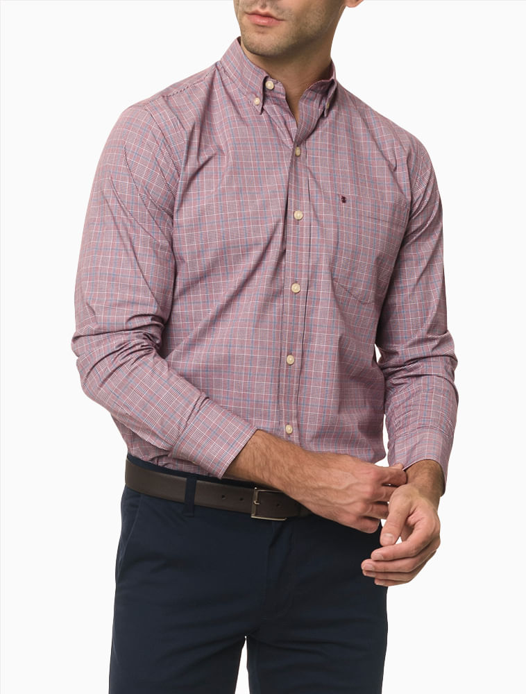 A camisa manga longa em xadrez azul da IZOD tem uma modelagem regular, com um bolso chapado no peito , e com abotoamento button-down no colarinho .É uma camisa despojada , casual mas pode facilmente ser usada no dia a dia do trabalho .Com elastano em sua composição , a torna super confortável Facil de lavar e secar .