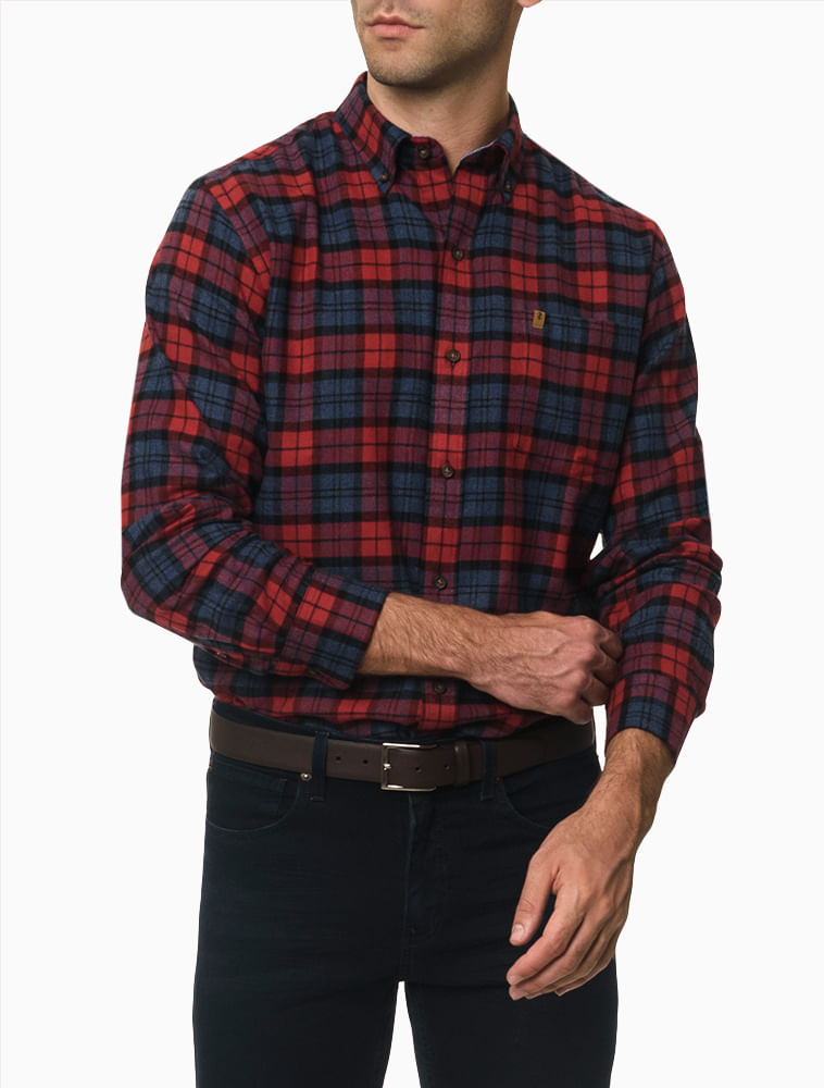 A camisa manga longa em flanela xadrez bordo da IZOD tem uma modelagem regular, com um bolso chapado no peito , e com abotoamento button-down no colarinho .É uma camisa despojada , casual mas pode facilmente ser usada no dia a dia do trabalho. Para dias mais frios. Facil de lavar e secar .