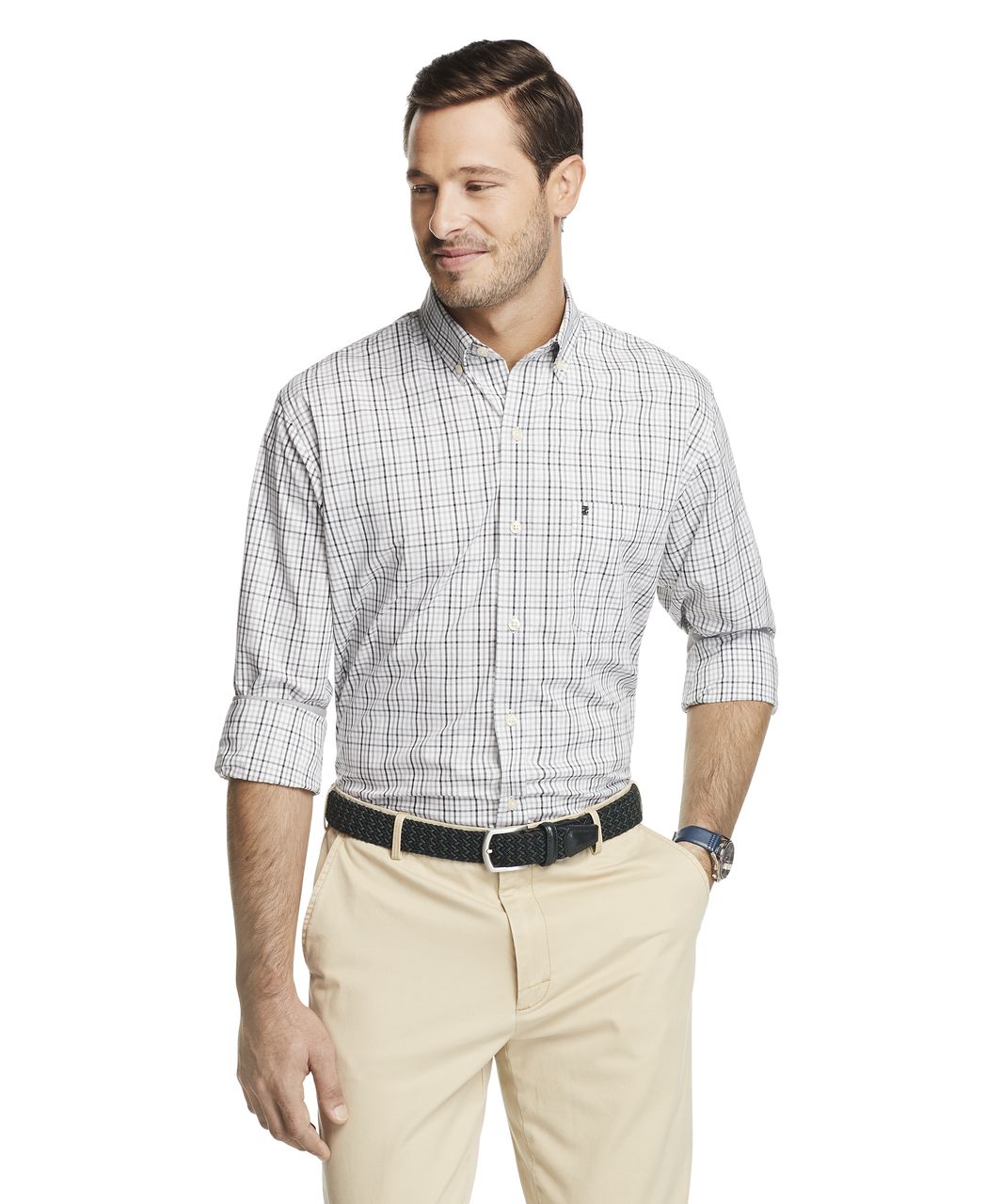 A camisa manga longa em xadrez amarelo claro e detalhes em azul da IZOD tem uma modelagem regular, com um bolso chapado no peito , e com abotoamento button-down no colarinho .É uma camisa despojada , casual mas pode facilmente ser usada no dia a dia do trabalho .Com elastano em sua composição , a torna super confortável Facil de lavar e secar .