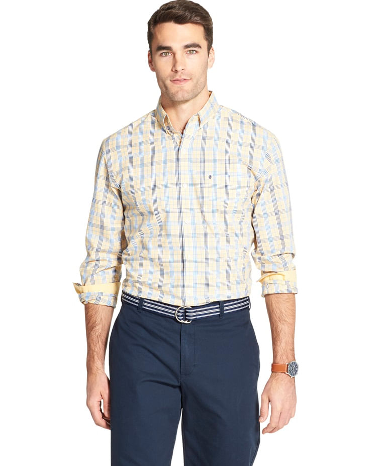 A camisa manga longa em xadrez amarelo da IZOD tem uma modelagem regular, com um bolso chapado no peito , e com abotoamento button-down no colarinho .É uma camisa despojada , casual mas pode facilmente ser usada no dia a dia do trabalho .Com elastano em sua composição , a torna super confortável Facil de lavar e secar .