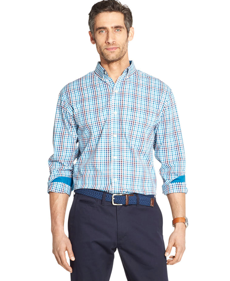 A camisa manga longa em xadrez multicolor em tons de azul da IZOD tem uma modelagem regular, com um bolso chapado no peito , e com abotoamento button-down no colarinho O pé de gola e os punhos internos são em contraste .É uma camisa despojada , casual mas pode facilmente ser usada no dia a dia do trabalho . Em 100% algodão , e como toda fibra natural , a torna super confortável, respirável, fácil de lavar e secar .