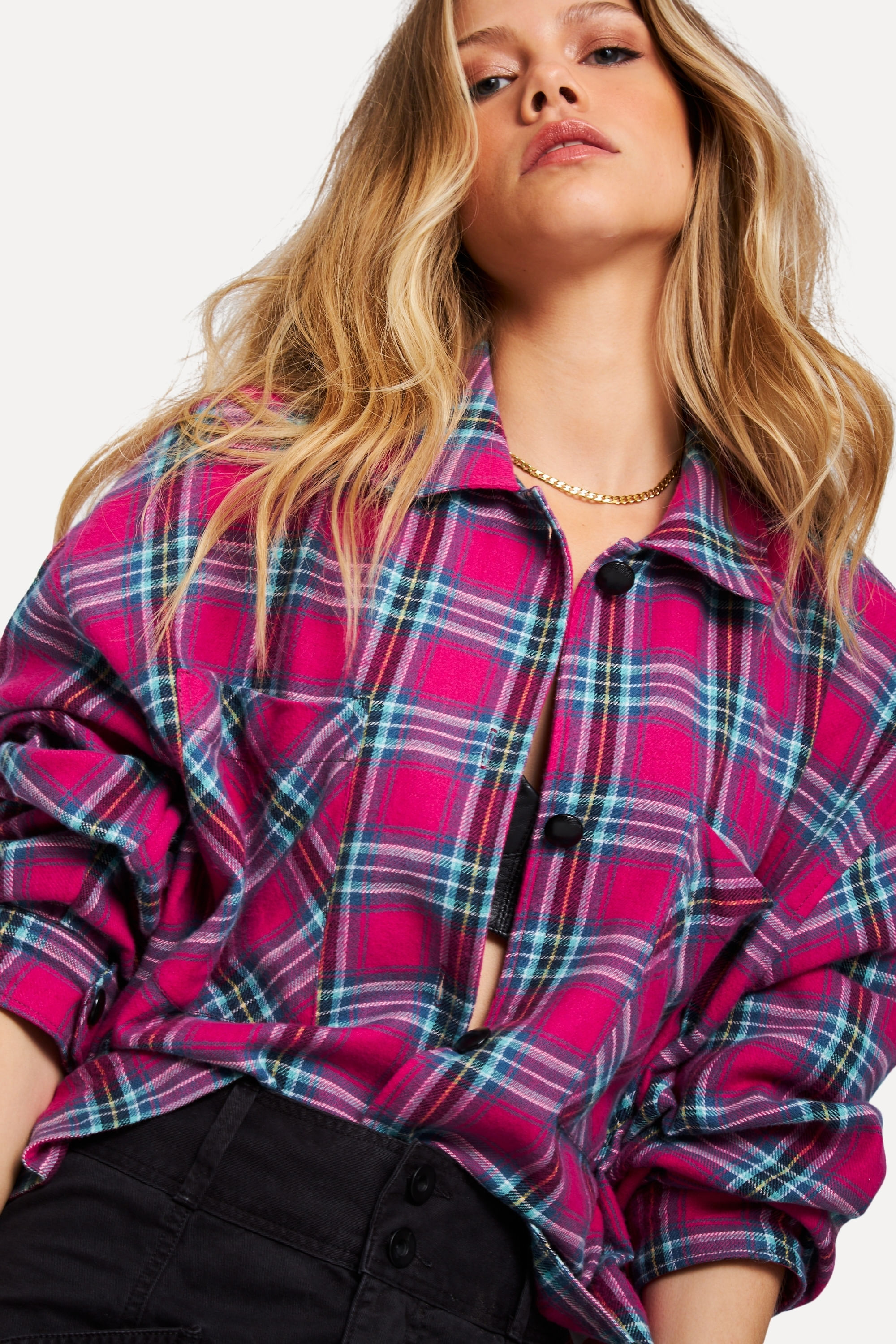 Peça curinga no seu closet! A camisa de algodão rosa tem shape mais amplo e pode ser usada fechada, com calças de alfaiataria ou jeans, ou aberta, sobre tops e camisetas regata para um look casual e urbano.