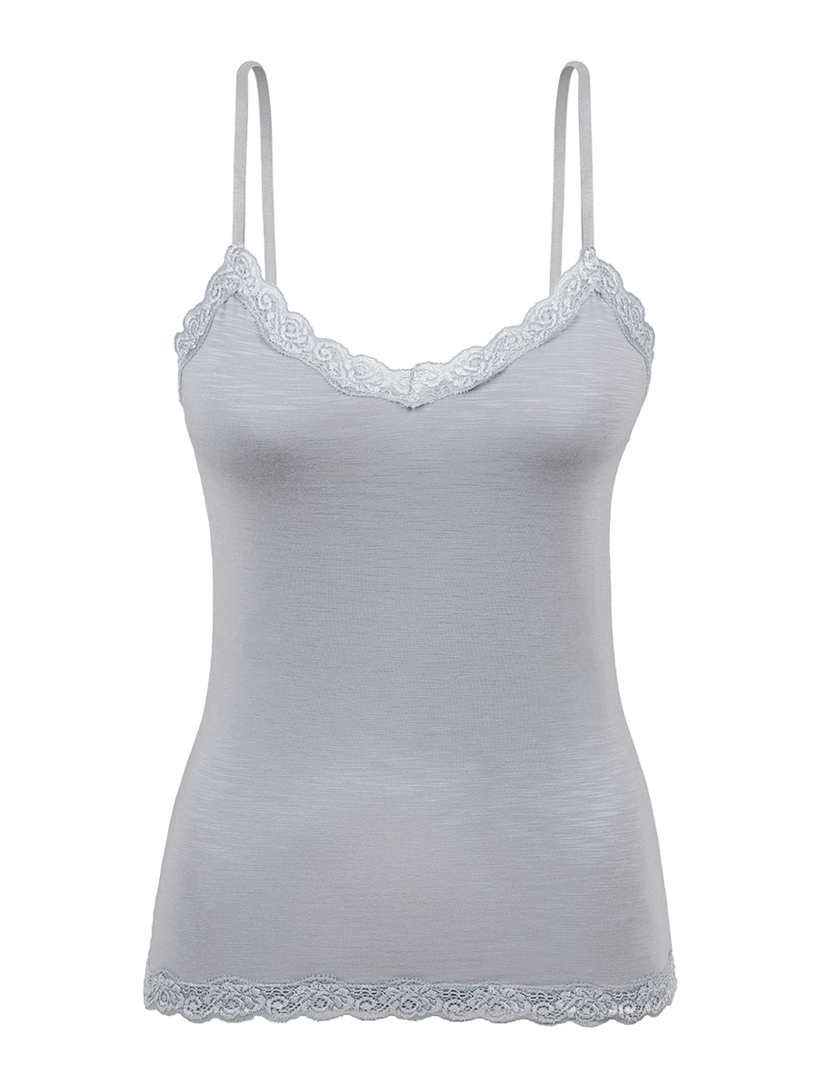 Camiseta Alças Finas Em Modal E Detalhe Em Renda - Cinza - P - 00L26320-MCL-P