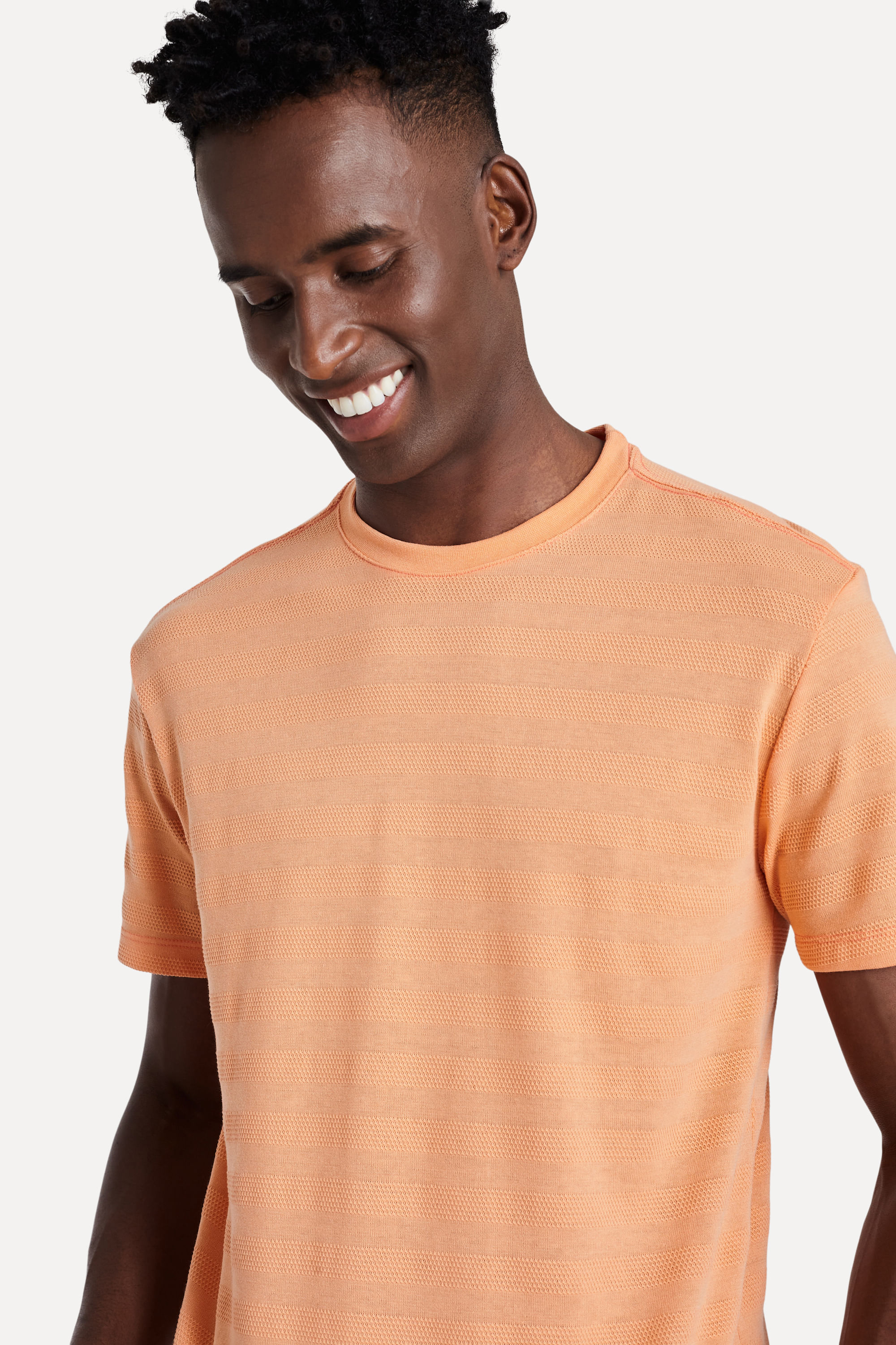 A Camiseta Aragem da Reserva é perfeita para homens que buscam um visual despojado e moderno. Confeccionada em malha trabalhada com textura horizontal, ela oferece um visual listrado novo e diferenciado. Com mangas curtas e caimento reto, essa camiseta possui uma gola redonda de ribana que proporciona conforto e estilo. O destaque fica por conta do bordado pica-pau na cor da peça, trazendo um toque de sofisticação ao visual. Versátil, essa camiseta pode ser usada em diversas ocasiões, se adaptando tanto a um look casual quanto a um look mais sofisticado. Seja para um passeio no parque ou para um jantar com os amigos, a Camiseta Aragem é a escolha certa.O modelo tem 1,84 de altura, 99 de tórax e veste 42. Comprando esta peça, você viabiliza cinco pratos de comida através do nosso Programa 1P5P. Produto produzido eticamente no Brasil.