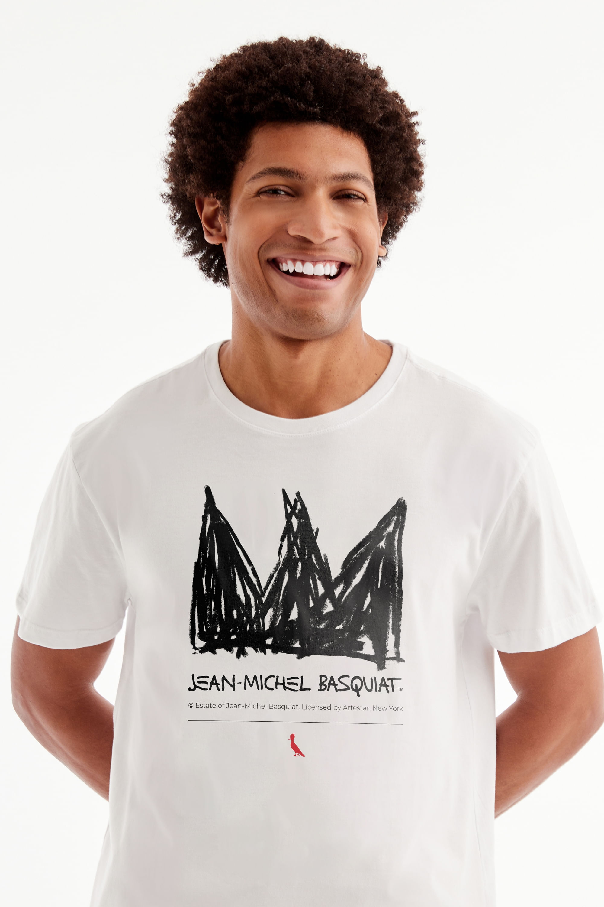 Uma das maiores expressões artísticas de todos os tempos estampadas em uma peça de roupa. A Camiseta Basquiat Crown Risk traz a famosa coroa que o artista retratou incansavelmente em suas obras. Basquiat acreditava que todo jovem rebelde e talentoso como ele, assim como suas inspirações, eram verdadeiros reis e mereciam ser exaltados dessa forma. Esta peça é uma homenagem a Jean-Michel Basquiat, que para nós, será uma eterna referência de expressão e arte. Camiseta produzida eticamente no Brasil. Comprando esta peça, você viabiliza cinco pratos de comida através do nosso programa 1P5P. O modelo tem 1,84 m de altura, 99 cm de tórax e veste M.