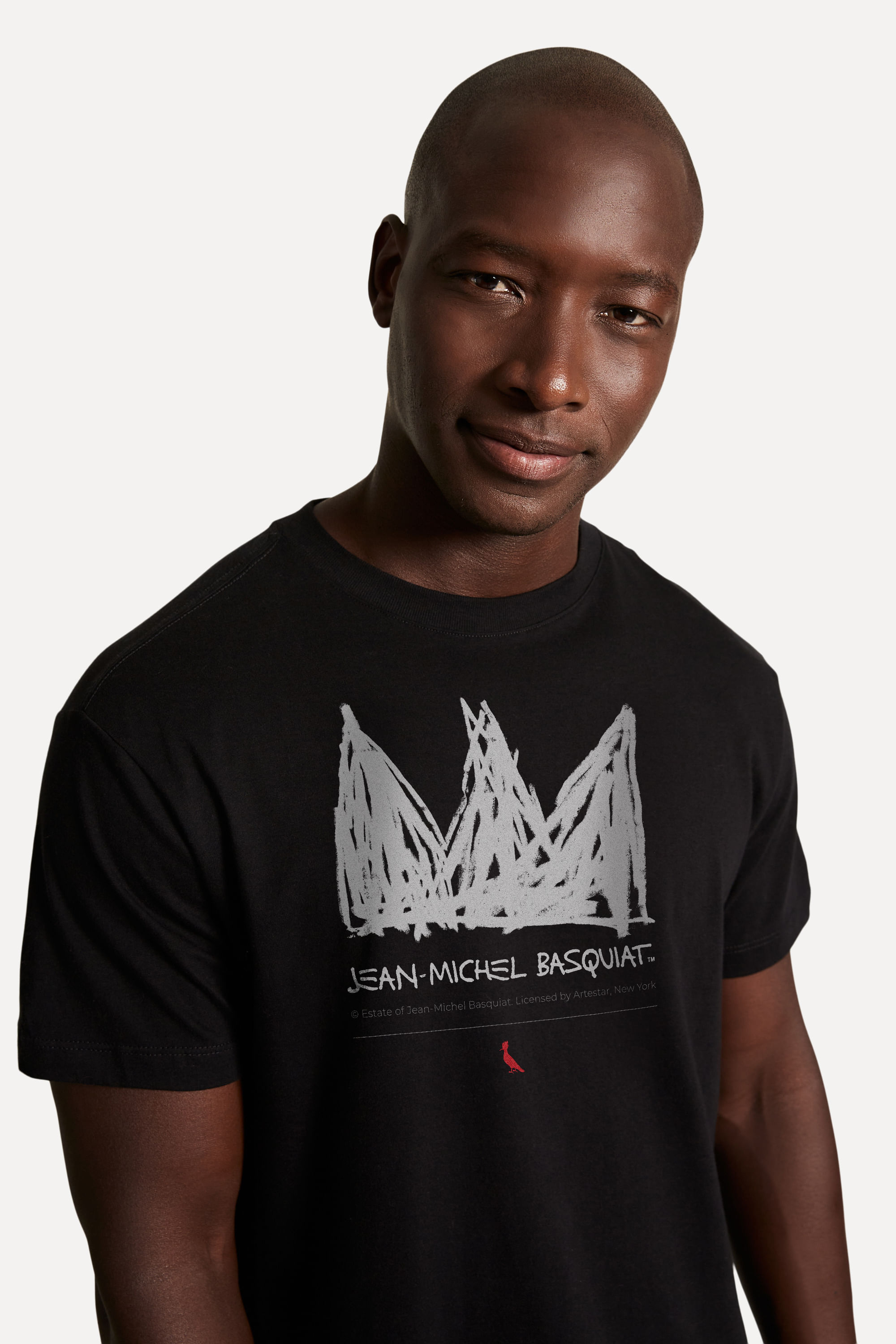 Uma das maiores expressões artísticas de todos os tempos estampadas em uma peça de roupa. A Camiseta Basquiat Crown Risk traz a famosa coroa que o artista retratou incansavelmente em suas obras. Basquiat acreditava que todo jovem rebelde e talentoso como ele, assim como suas inspirações, eram verdadeiros reis e mereciam ser exaltados dessa forma. Esta peça é uma homenagem a Jean-Michel Basquiat, que para nós, será uma eterna referência de expressão e arte. Camiseta produzida eticamente no Brasil. Comprando esta peça, você viabiliza cinco pratos de comida através do nosso programa 1P5P. O modelo tem 1,84 m de altura, 99 cm de tórax e veste M.