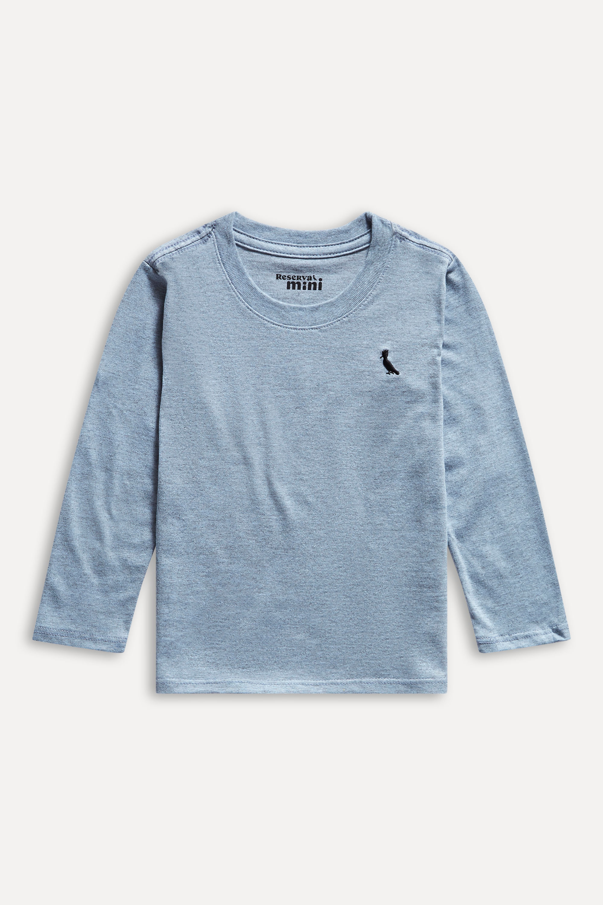 Camiseta da linha infantil Reserva Mini para bebês. O modelo super básico de manga longa ganhou malha mescla colorida e vai com tudo. Para usar com partes de baixo estampadas ou calças sociais para dar uma modernidade ao look. Indispensável! Produzido eticamente no Brasil. Comprando esta peça, você complementa cinco pratos de comida através do nosso programa 1P=5P.
