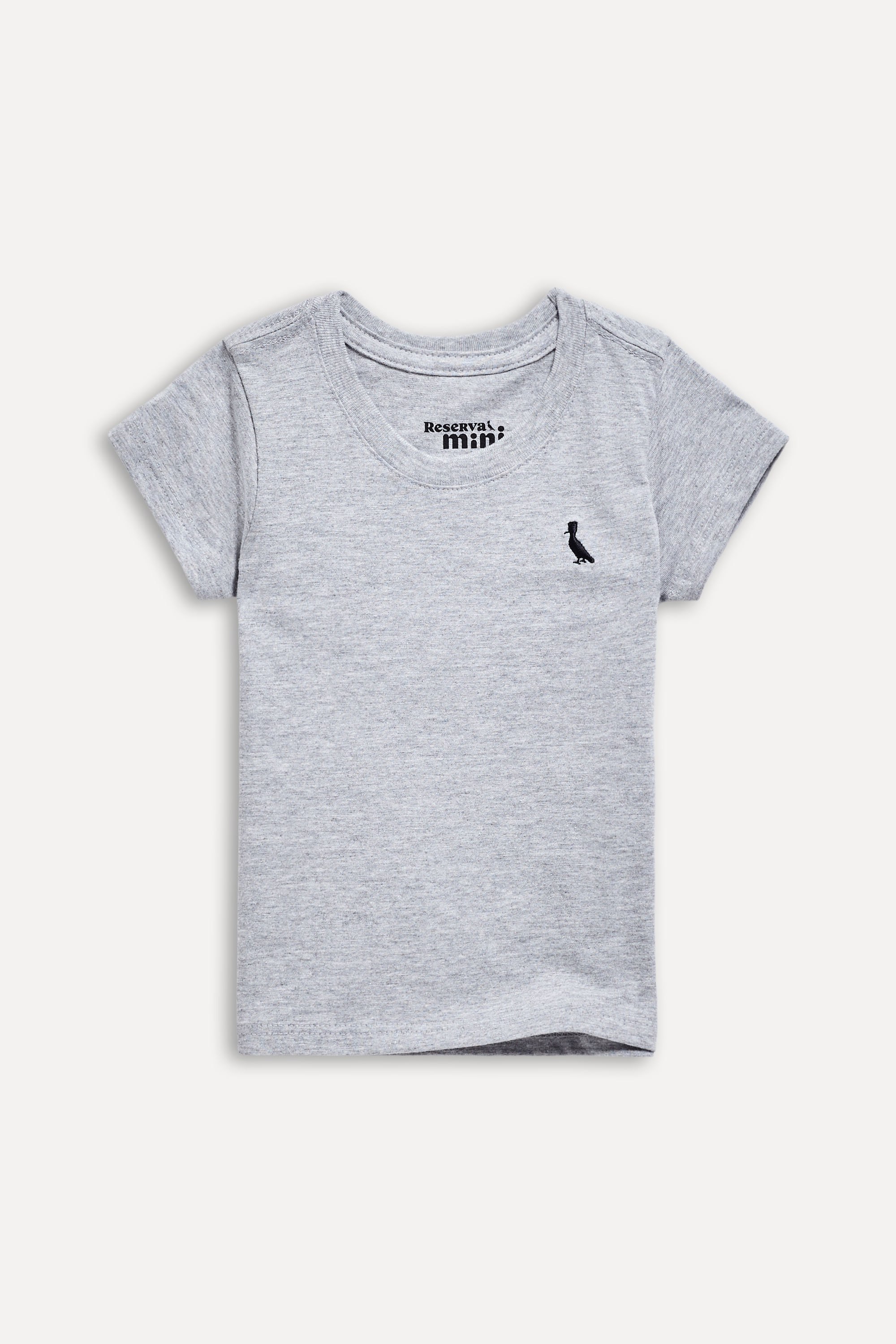 Camiseta da linha infantil para bebês Reserva Mini. O modelo básico em malha mescla combina com qualquer parte de baixo. Macia, confortável e perfeita para o dia a dia! Possui nosso onipresente pica-pau bordado na cor preta. Produzido eticamente no Brasil. Comprando esta peça, você complementa cinco pratos de comida através do nosso programa 1P=5P.