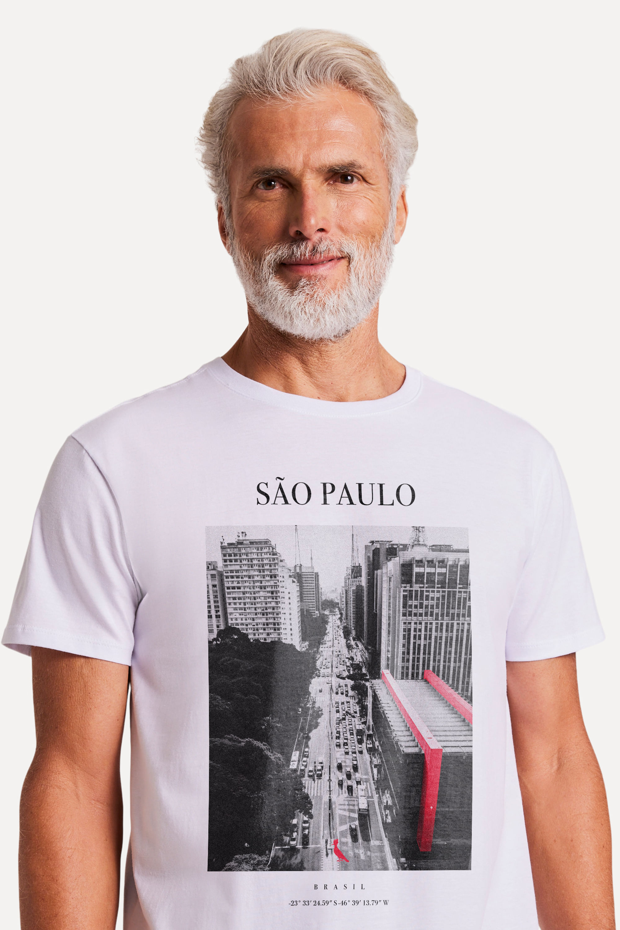 A Camiseta Cidade de São Paulo homenageia a avenida mais famosa do país: a Avenida Paulista. Sua estampa traz como destaque o MASP, única parte colorida, para harmonizar com o vermelho do clássico pica-pau da Reserva. Embaixo da estampa, as coordenadas da maior cidade do país. Use com bermuda ou calça jeans e esteja pronto para um rolê mais despojado. O modelo da cor branca tem 1,84 de altura, 103 de tórax e veste 42; o modelo da cor preta tem 1,84 de altura, 99 de tórax e veste 42. Comprando esta peça, você viabiliza cinco pratos de comida através do nosso Programa 1P5P. Camiseta produzida eticamente no Brasil.