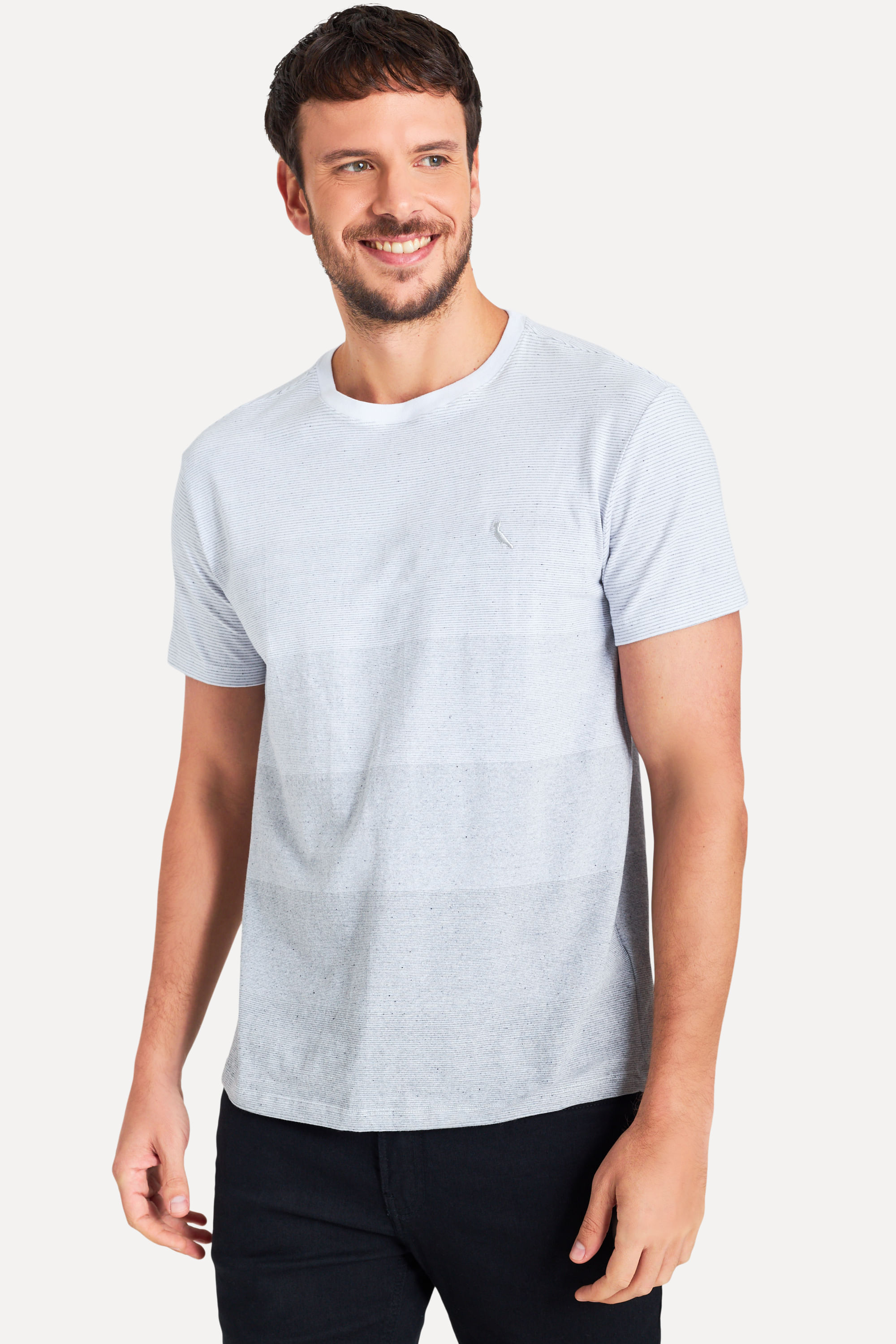 Apresentamos a Camiseta Degrade Reciclado, pra você se vestir bem sem agredir o meio ambiente! Ela é feita de tecido reciclado, reduzindo o impacto ambiental na sua produção, mas mantendo a qualidade e o conforto que você já conhece. Combine com calças, bermudas, jaquetas, tênis ou chinelos. O modelo tem 1,89 de altura, 102 de tórax e veste 40. Comprando esta peça, você viabiliza cinco pratos de comida através do nosso Programa 1P5P. Camiseta produzida eticamente no Brasil.