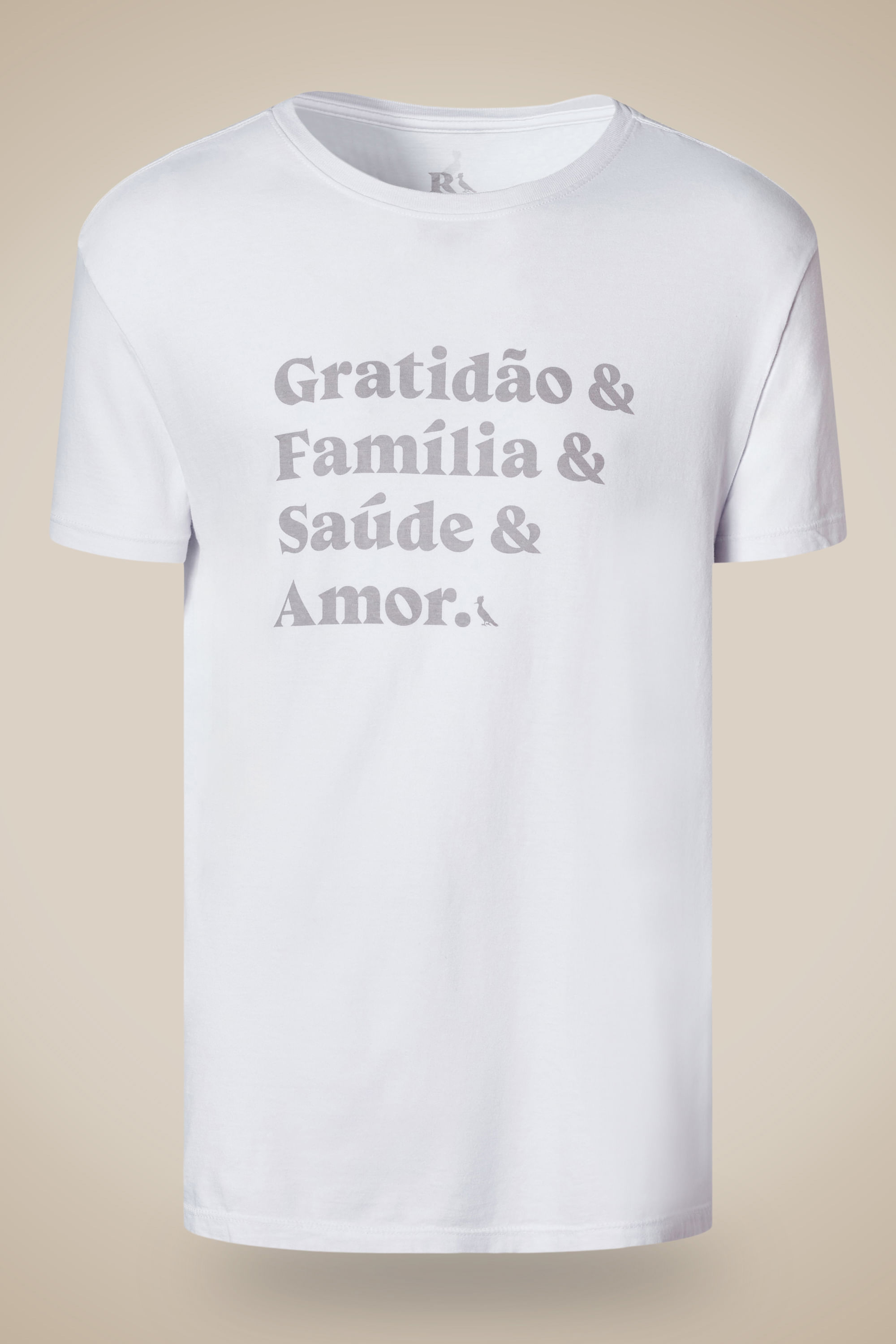 <b>Camiseta Família Gratidão</b>, feita em 100% algodão com toque leve e agradável, carrega uma mensagem que celebra o amor e os laços familiares. A estampa exclusiva traduz carinho e afeto em uma peça confortável e cheia de significado. Comprando esta peça, você viabiliza cinco pratos de comida através do nosso Programa 1P5P. Produzida de forma ética no Brasil. <br> <br> <b>Detalhes da peça:</b> <br>• 100% algodão com toque macio e respirável <br>• Estampa exclusiva com tema de família e gratidão <br>• Modelagem confortável com ótimo caimento <br>• Ideal para momentos especiais ao lado de quem você ama <br>• Versátil e cheia de significado <br> <br> <b>Sugestão de uso:</b> Vista em <a href="https://www.usereserva.com/colecao-reserva/bermudas-e-shorts" target="_blank">produções leves</a> para encontros em família, celebrações ou qualquer ocasião em que o sentimento de gratidão quiser estar presente no look.
