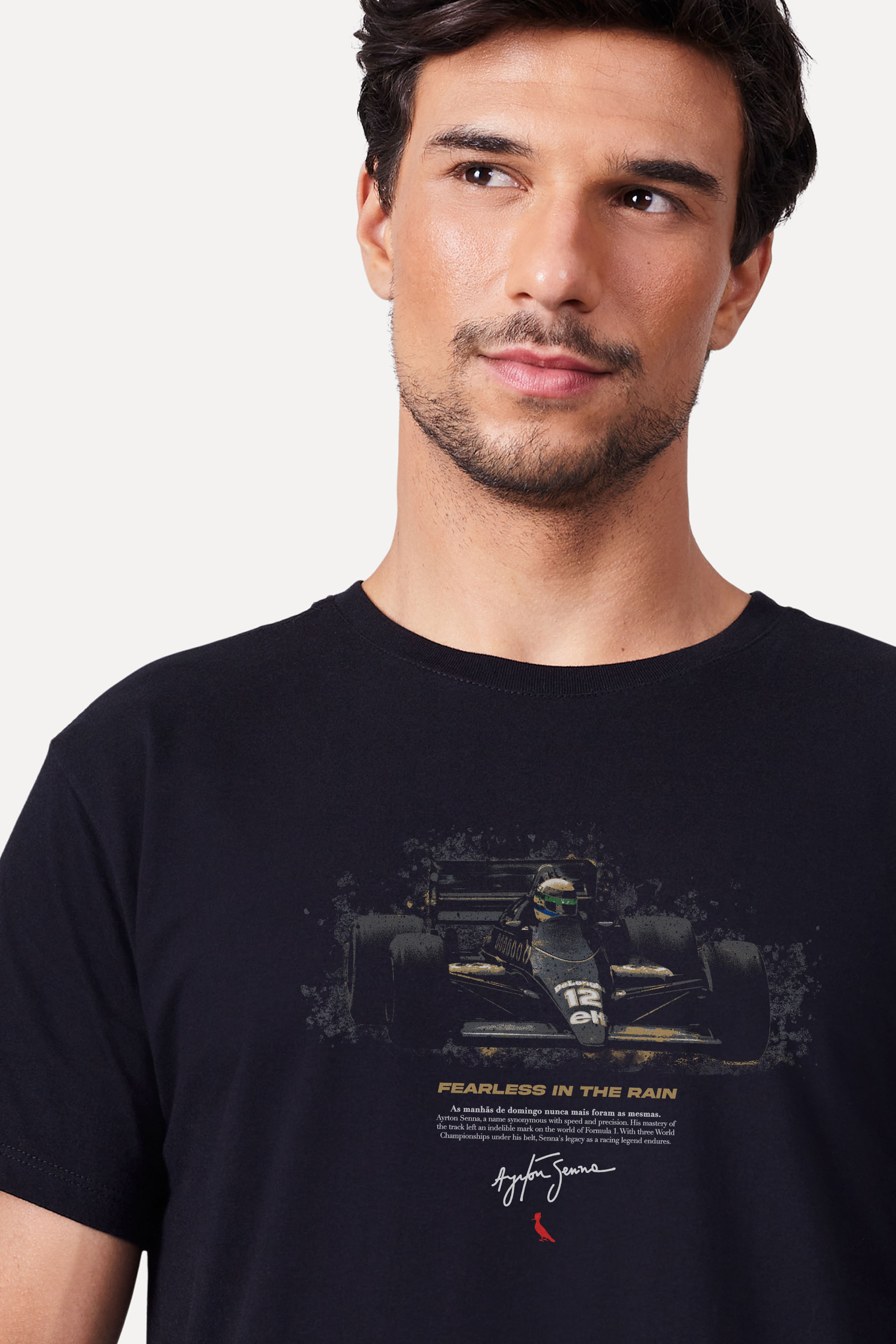 Das manhãs de domingo para a eternidade! Conheça a Camiseta Fearless in The Rain Senna, feita para os fãs de um dos maiores pilotos de Fórmula 1 da história. Feita em malha 100% algodão, manga curta, gola redonda de ribana de algodão e modelagem regular, que oferece caimento reto no corpo. Sua estampa traz Ayrton em sua Lotus com a frase “Fearless in The Rain” (Destemido na chuva, em tradução), homenageando sua habilidade única em corridas na chuva. Disponível em 2 cores, escolha qual combina mais com seu estilo e nostalgia. Combine com calças ou bermudas, tênis ou chinelos e acelere! O modelo tem 1,85 de altura, 103 de tórax e veste 40. Comprando esta peça, você viabiliza cinco pratos de comida através do nosso Programa 1P5P. Camiseta produzida eticamente no Brasil.