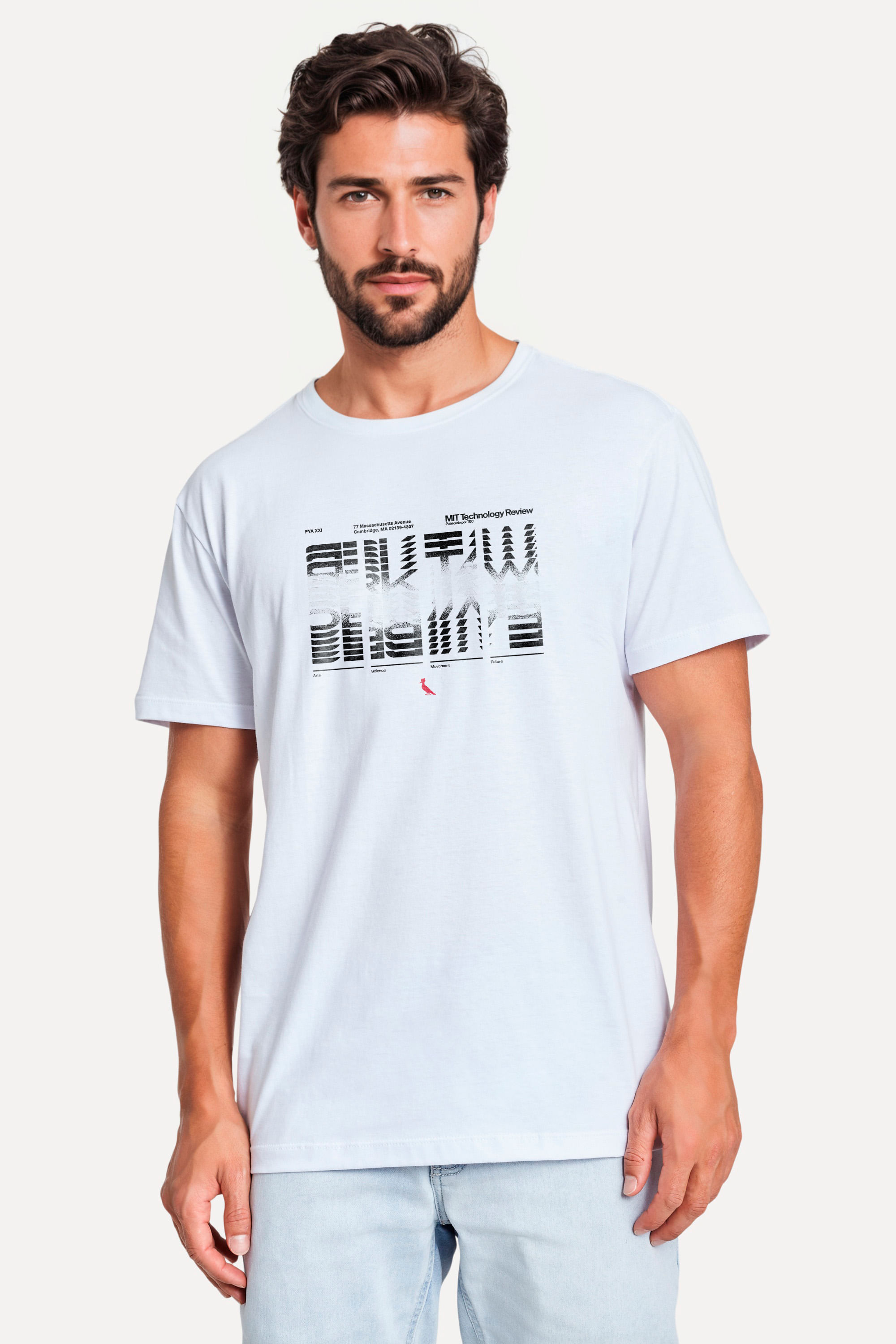 Camiseta feita em algodão de alta qualidade, proporcionando muito conforto e liberdade de movimentos. Possui manga curta, gola redonda em ribana e estampa exclusiva Reserva + MIT Technology Review. Combine com calça ou bermudas, tênis ou chinelos e agasalhos. Comprando esta peça, você viabiliza cinco pratos de comida através do nosso Programa 1P5P. Camiseta produzida eticamente no Brasil.