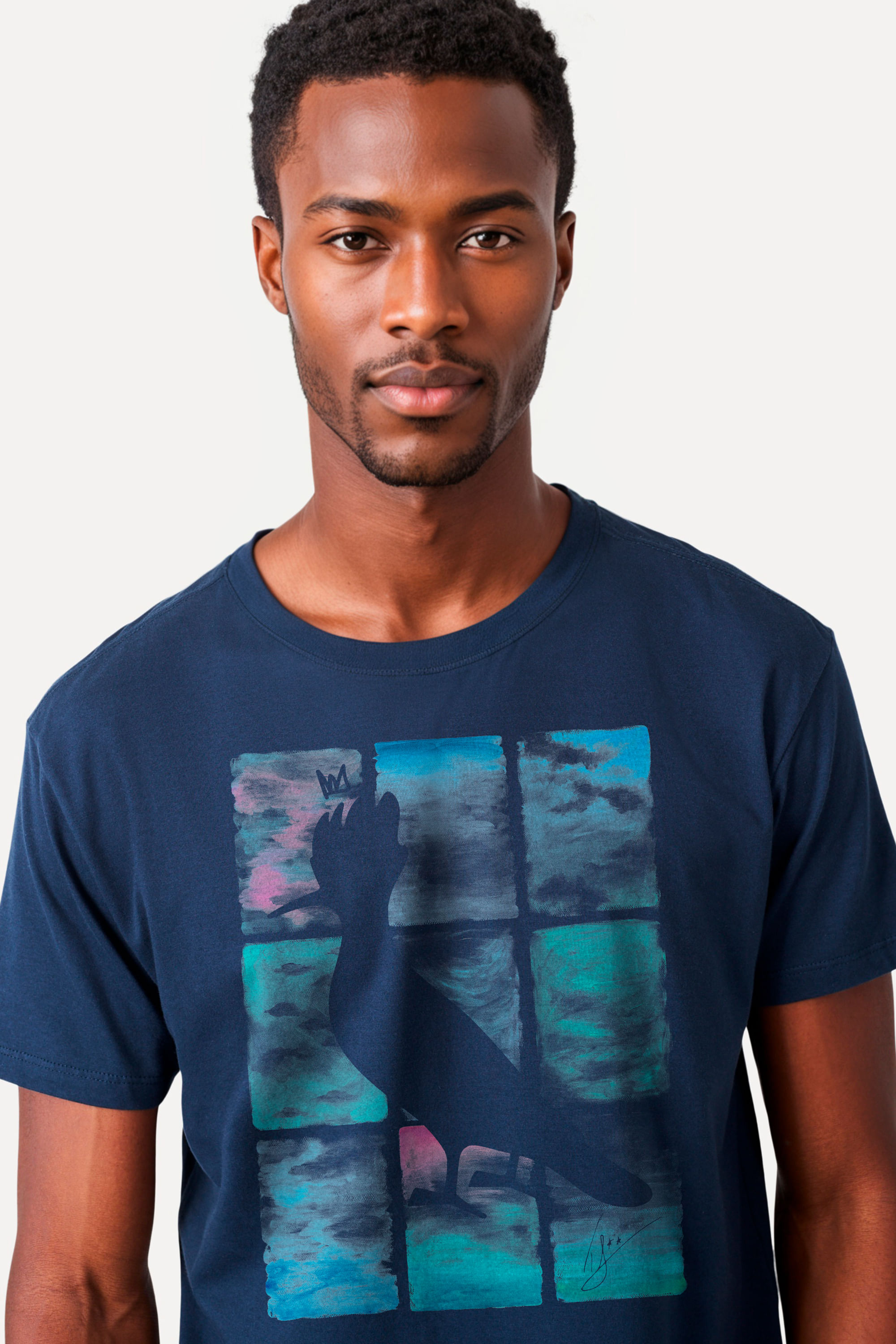 Camiseta feita em algodão de alta qualidade, proporcionando muito conforto e liberdade de movimentos. Possui manga curta, gola redonda em ribana e estampa exclusiva Reserva + Thiaguinho. Combine com calça ou bermudas, tênis ou chinelos e agasalhos pra curtir o melhor pagodinho. Comprando esta peça, você viabiliza cinco pratos de comida através do nosso Programa 1P5P. Camiseta produzida eticamente no Brasil.