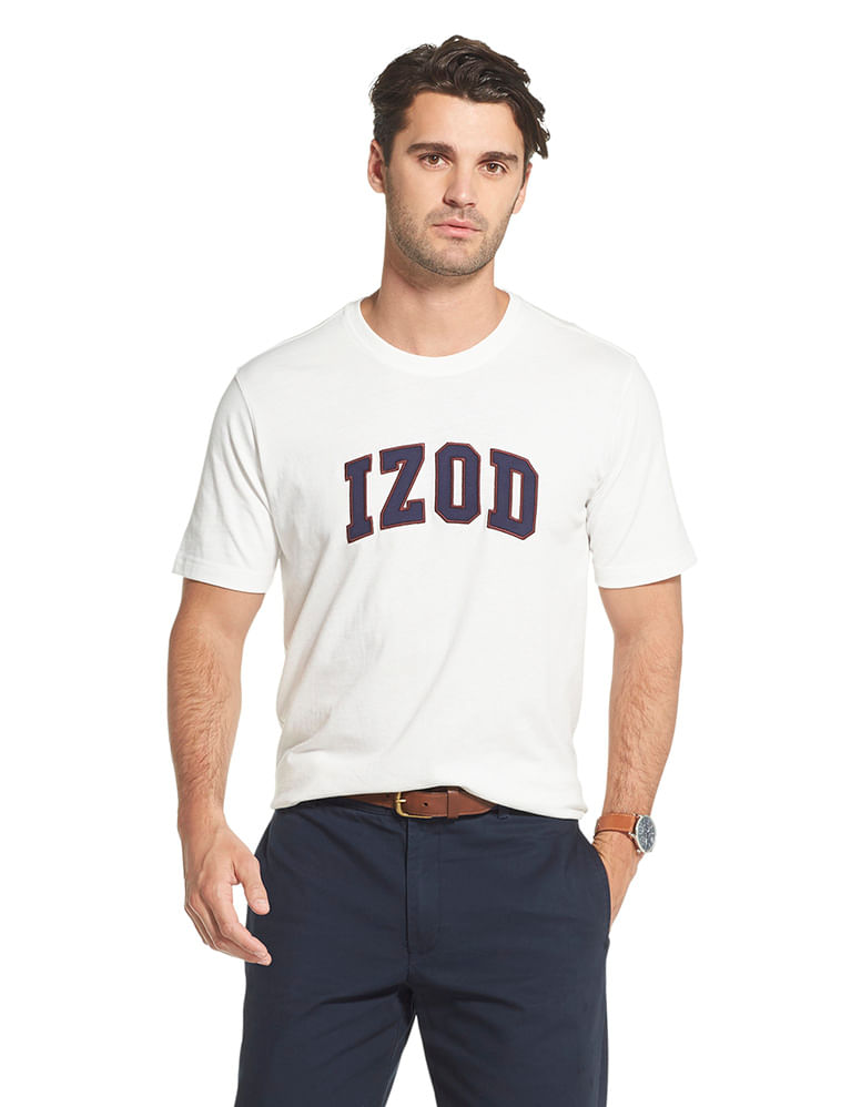 A camiseta estampada da IZOD traz o look divertido do college. Possui toque macio graças à sua composição mista. As cores branco e marinho ajudam a compor um look fácil, moderno e divertido ao mesmo tempo. É fácil de lavar, secar e vestir.