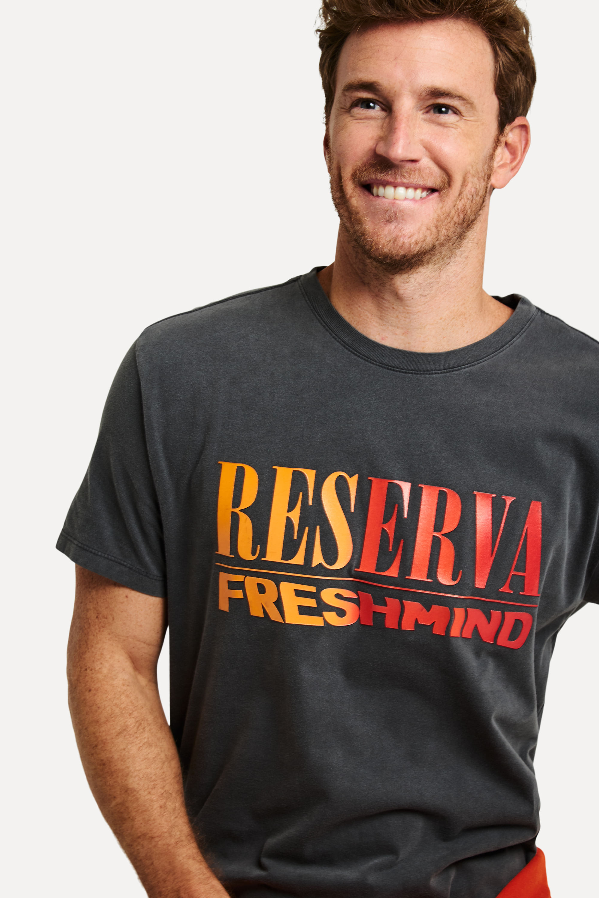 A Camiseta Estampada Freshmind possui estampa exclusiva e modelagem regular. Camiseta Reserva produzida eticamente no Brasil. Comprando esta peça, você viabiliza cinco pratos de comida através do nosso programa 1P5P.