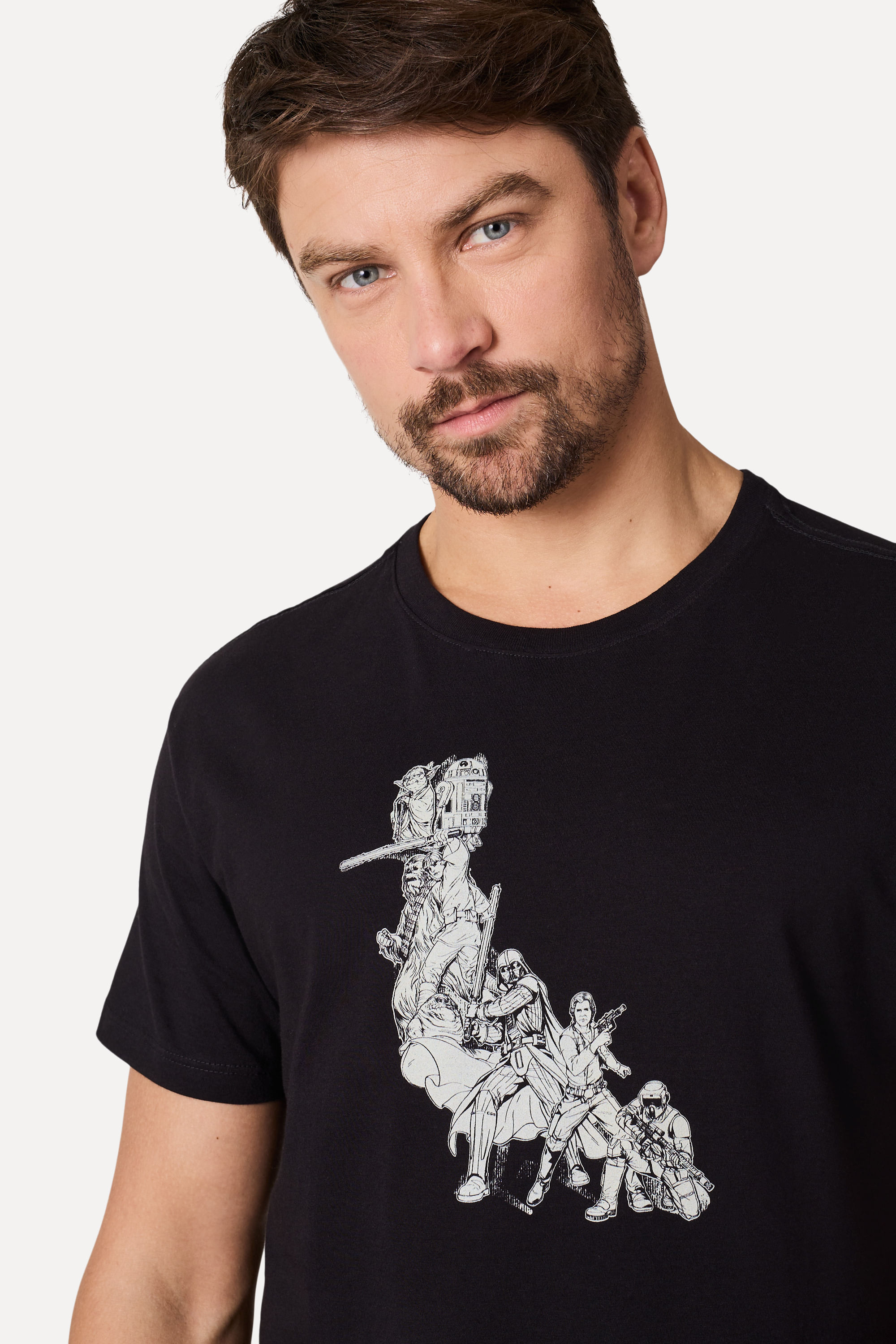 A **Camiseta Estampada Pica Pau Starwars** é a escolha perfeita para quem busca estilo e conforto. Confeccionada em malha 100% algodão, esta camiseta garante frescor e durabilidade graças à lavagem reativa que mantém as cores vivas, deixando a peça com aparência de nova por mais tempo. Com modelagem regular, oferece um caimento reto no corpo, enquanto a manga curta e a gola redonda de ribana completam o visual casual. A estampa frontal exclusiva do nosso Pica Pau formado por referências de Star Wars é feita em silkscreen à base d'água, proporcionando um toque suave. O detalhe especial fica por conta da assinatura traseira com nosso famoso marcote Pica Pau e uma etiqueta clip na barra frontal. O modelo tem 1,85m de altura, 103cm de tórax e veste tamanho 40. Além disso, ao adquirir esta peça você contribui para o Programa 1P5P, viabilizando cinco pratos de comida. Produto produzido eticamente no Brasil.