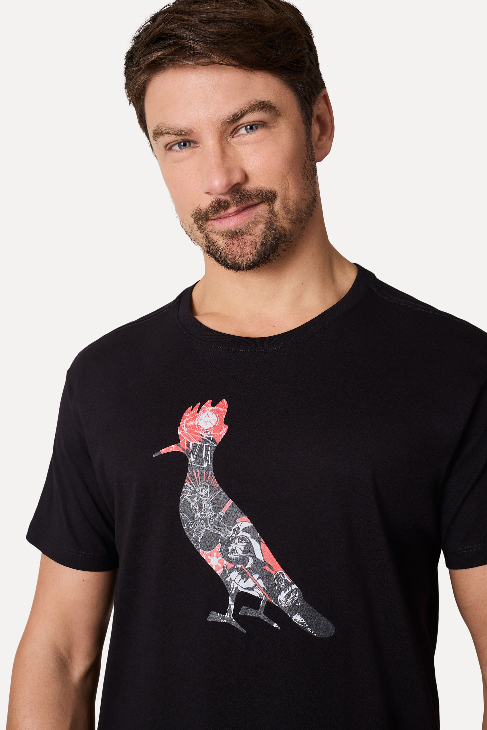Apresentamos a Camiseta Estampada Pica Pau Vader, uma peça que une estilo e conforto de forma única. Confeccionada em malha 100% algodão, esta camiseta garante frescor durante todo o dia. A lavagem reativa proporciona cores vivas e duradouras, deixando a peça com aparência de nova por mais tempo. A Camiseta Estampada Pica Pau Vader possui manga curta, gola redonda de ribana de algodão e modelagem regular, que oferece um caimento reto no corpo. A arte frontal localizada no peito é feita em silkscreen à base d'água, sem toque e exclusiva do nosso pica pau formado por referências e personagens do Star Wars. Como assinatura traseira da Camiseta Estampada Pica Pau Vader, temos nosso famoso marcote pica pau e uma etiqueta clip aplicada na barra frontal como parte da colabe. O modelo tem 1,85m de altura, 103cm de tórax e veste tamanho 40. Ao adquirir esta peça, você viabiliza cinco pratos de comida através do nosso Programa 1P5P. Produto produzido eticamente no Brasil.
