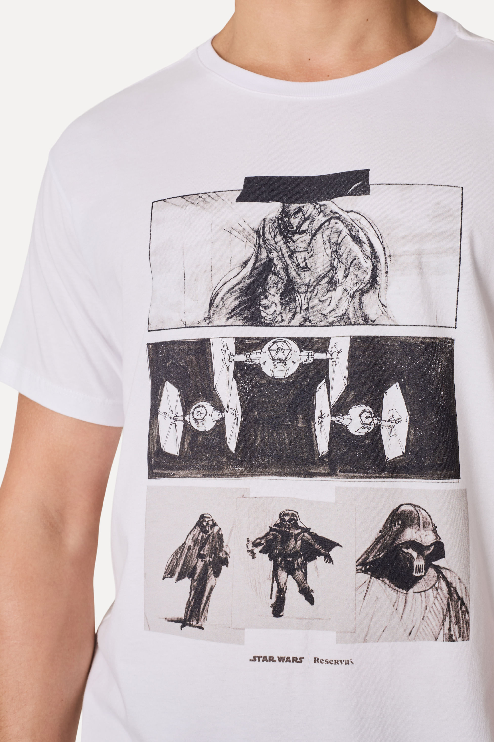 Conheça a incrível Camiseta Estampada Quadrinhos Starwars, perfeita para os fãs da saga e amantes de moda casual. Confeccionada em malha 100% algodão, esta camiseta garante frescor e conforto durante todo o dia. A lavagem reativa mantém as cores vivas, dando à peça um ar sempre novo. Com modelagem regular, oferece um caimento reto no corpo. A arte frontal é exclusiva e feita em silkscreen à base d'água, sem toque, retratando croquis icônicos de cenas do Star Wars. Detalhes como a gola redonda de ribana e nosso famoso marcote pica pau na parte traseira adicionam estilo único. Além disso, uma etiqueta clip na barra frontal marca nossa colaboração especial. O modelo tem 1,85m de altura, 103cm de tórax e veste tamanho 40. Comprando esta peça, você viabiliza cinco pratos de comida através do nosso Programa 1P5P. Produto produzido eticamente no Brasil.