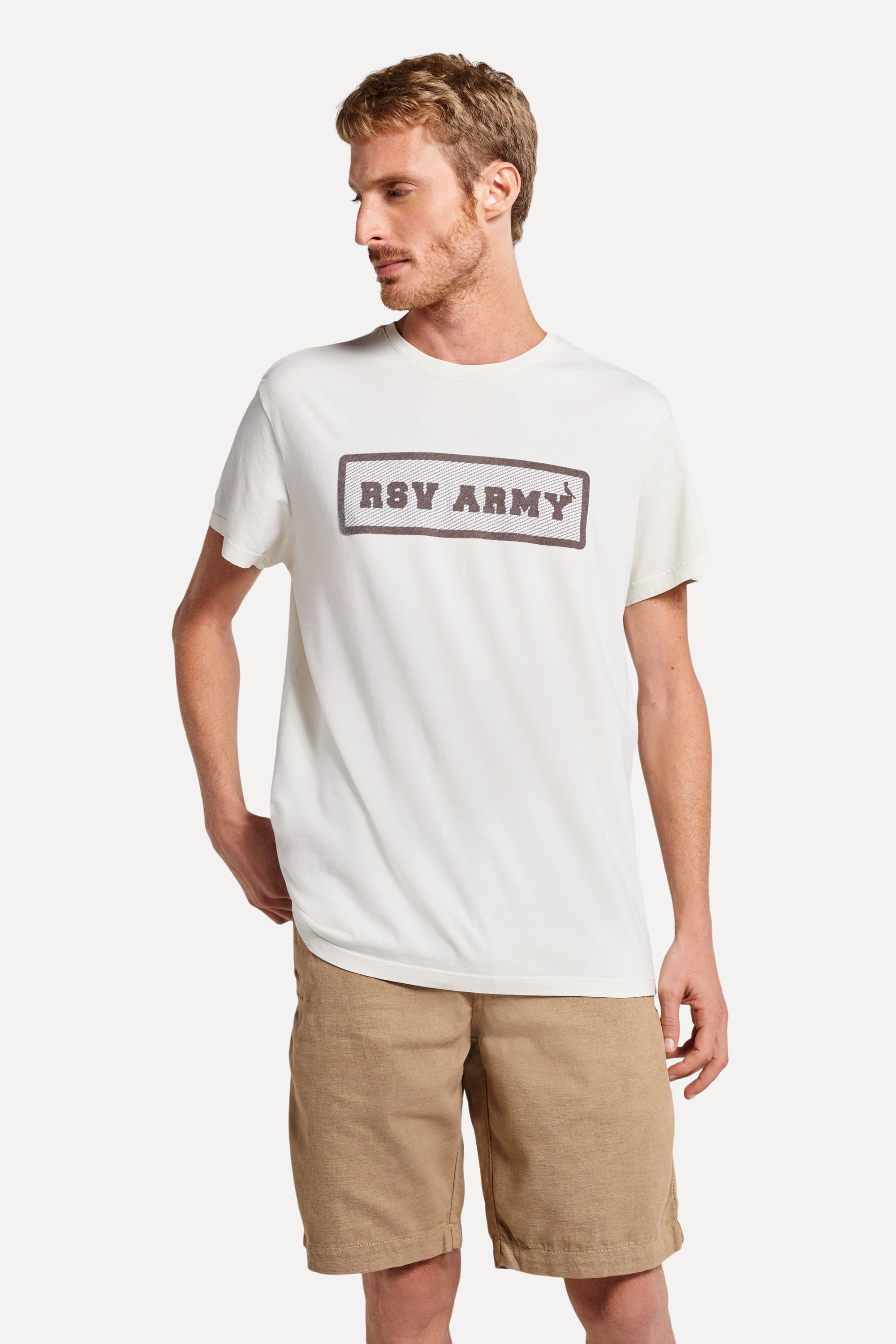 A Camiseta estampada RSV Army da Reserva é uma peça versátil e cheia de estilo. Com uma modelagem confortável, ela se adapta perfeitamente ao corpo, proporcionando liberdade de movimento. O tecido destaque é o que além de ser macio e durável. Use essa camiseta em diversas ocasiões, combinando com calças jeans, bermudas ou até mesmo por baixo de uma jaqueta. Seja parte dessa causa e vista-se com estilo! Comprando esta peça, você viabiliza cinco pratos de comida através do nosso Programa 1P5P. Produto produzido eticamente no Brasil.
