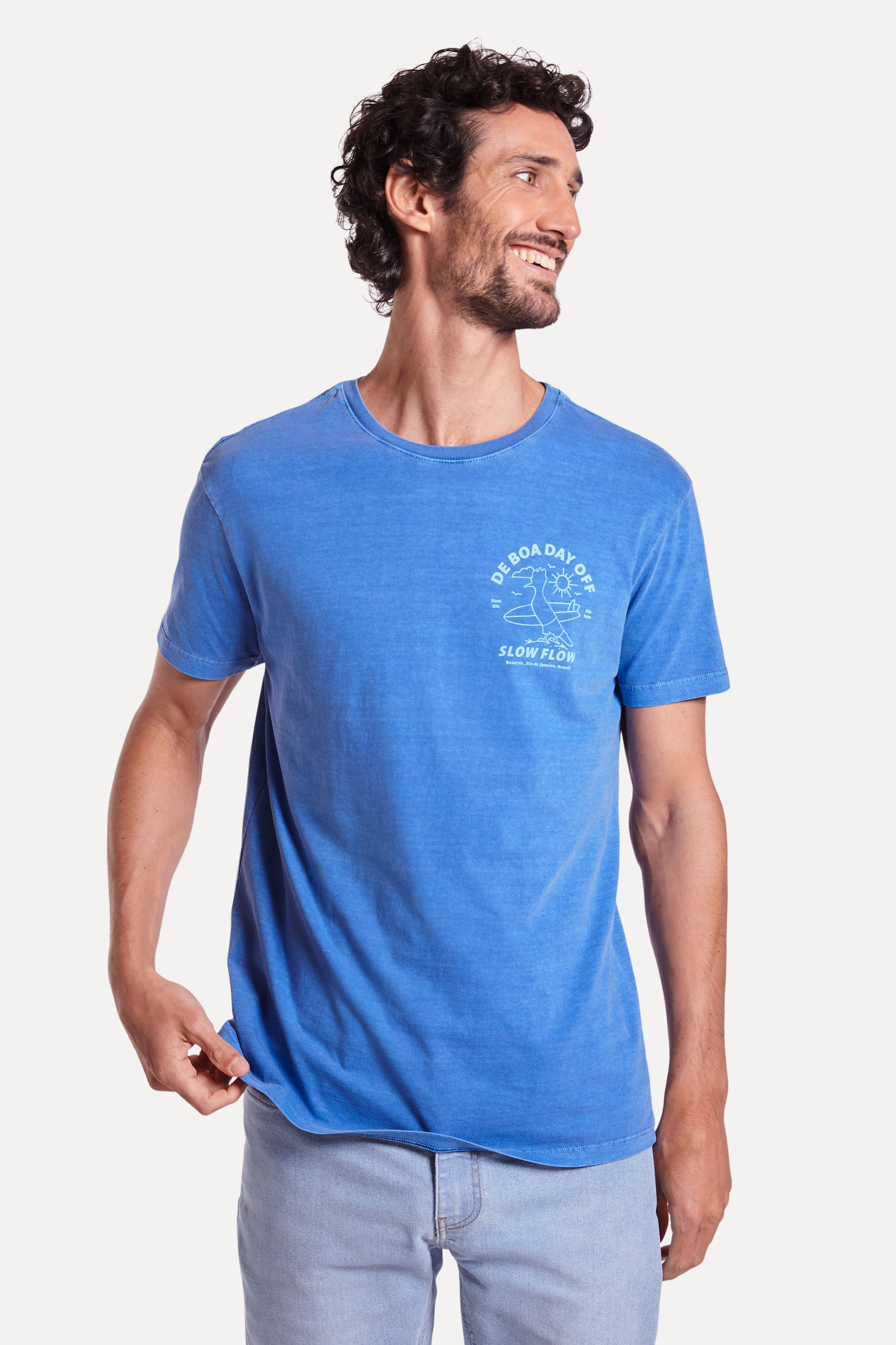 Camiseta feita em meia malha estonada 100% algodão, decote careca clássica e modelagem regular, que garante caimento perfeito em diversos tipos de corpos. Estampa exclusiva e localizada Slow Flow. Camiseta Reserva produzida eticamente no Brasil. Comprando esta peça, você viabiliza cinco pratos de comida através do nosso programa 1P5P.