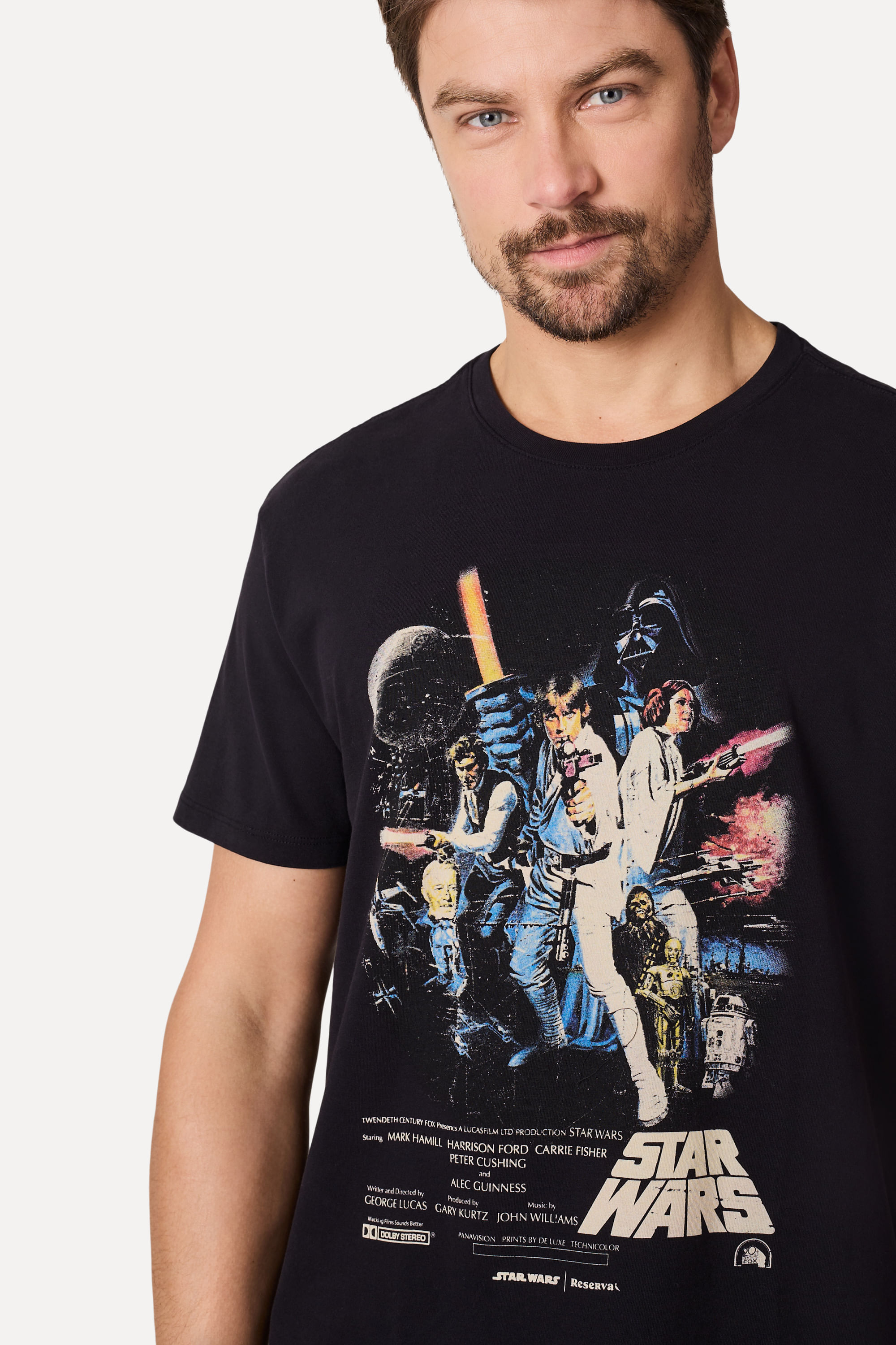 Apresentamos a Camiseta Estampada Uma Nova Esperança, uma peça que une estilo e conforto em um design exclusivo. Confeccionada em malha 100% algodão, fio 26.1, esta camiseta oferece frescor e durabilidade excepcionais. A lavagem reativa garante cores vivas e aspecto de sempre nova. Com modelagem regular, caimento reto no corpo, manga curta e gola redonda de ribana de algodão, a Camiseta Estampada Uma Nova Esperança é perfeita para qualquer ocasião casual. A arte frontal localizada no peito é feita em silkscreen à base d'água com estampa exclusiva dos personagens do Star Wars. O modelo tem 1,85 m de altura, 103 cm de tórax e veste tamanho 40. Como toques especiais, traz nosso famoso marcote pica pau na parte traseira e uma etiqueta clip na barra frontal como assinatura da colabe. Comprando esta peça, você viabiliza cinco pratos de comida através do nosso Programa 1P5P. Produto produzido eticamente no Brasil.