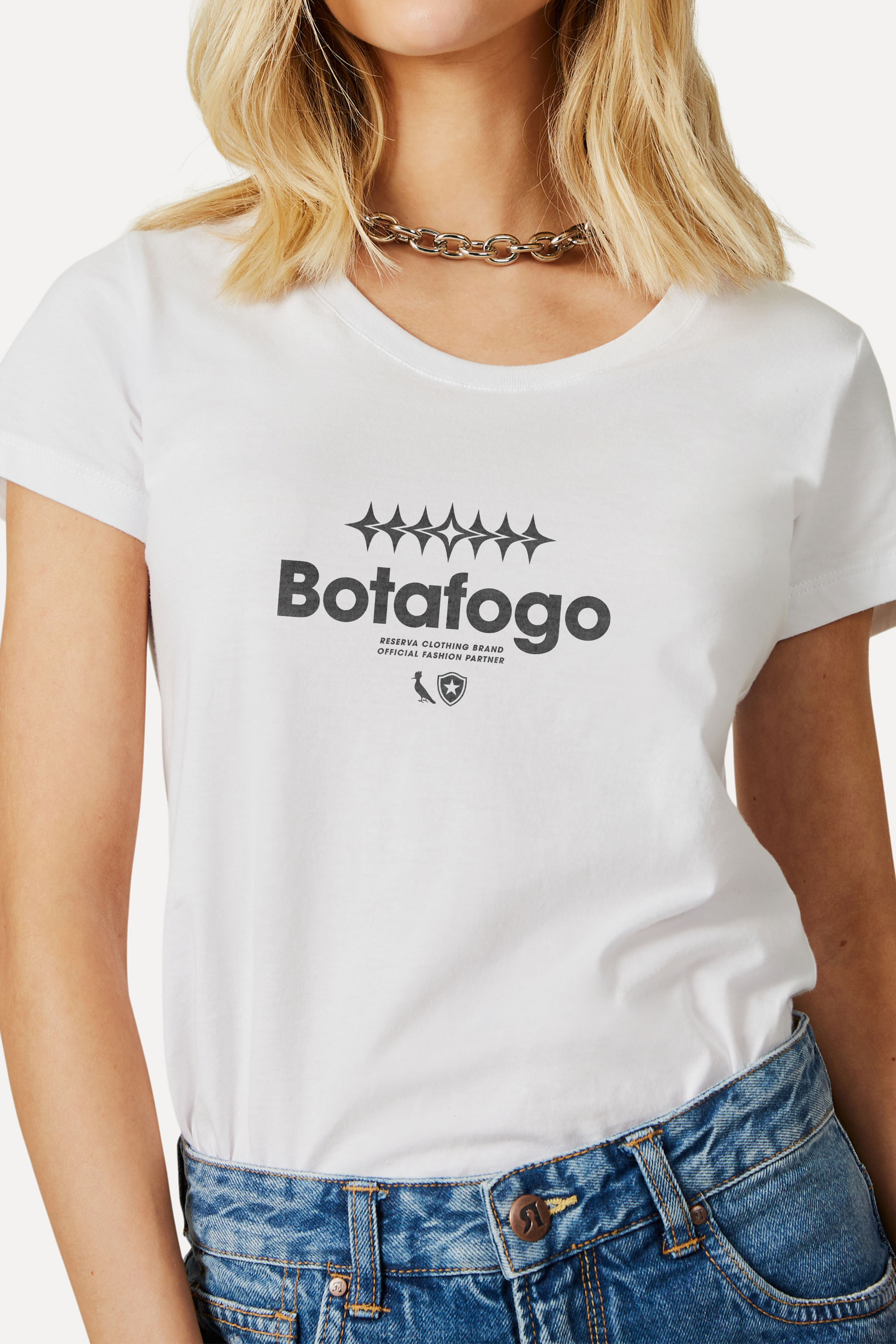 Tu és o Glorioso, não podes perder, perder pra ninguém! Conheça a Camiseta Feminina Estampada OFP Botafogo, feita para vestir os mais apaixonados torcedores da Estrela Solitária. Feita em algodão de alta qualidade, possui manga curta e gola redonda. Centralizada, está a frase “Botafogo – Reserva Clothing Brand Official Fashion Partner”, junto do nosso pica-pau e o escudo do Botafogo. Perfeita para um barzinho ou pro jogo no Niltão, combine com shorts ou calças, tênis, sandálias ou chinelos. Comprando esta peça, você viabiliza cinco pratos de comida através do nosso Programa 1P5P. Camiseta produzida eticamente no Brasil.