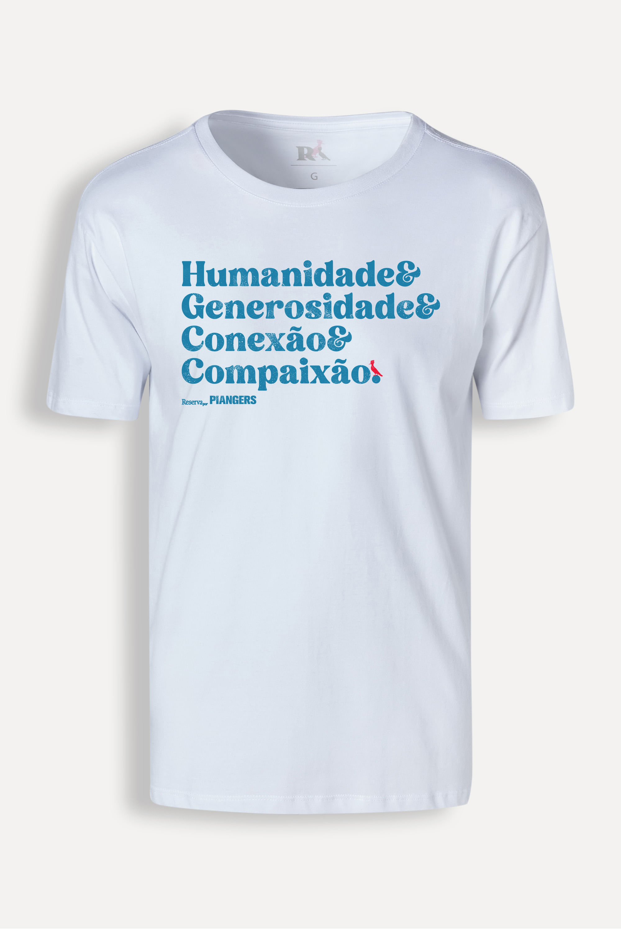 Escolha ser feliz! Conheça a Camiseta Humanidade, da collab Reserva + Piangers! Feita 100% em algodão, possui manga curta, gola redonda e estampa escrito “Humanidade & Generosidade & Conexão & Compaixão”, com a assinatura da collab e nosso pica-pau vermelho. Disponível em três cores, escolha a que melhor combina com seu estilo! Comprando esta peça, você viabiliza cinco pratos de comida através do nosso Programa 1P5P. Camiseta produzida eticamente no Brasil.