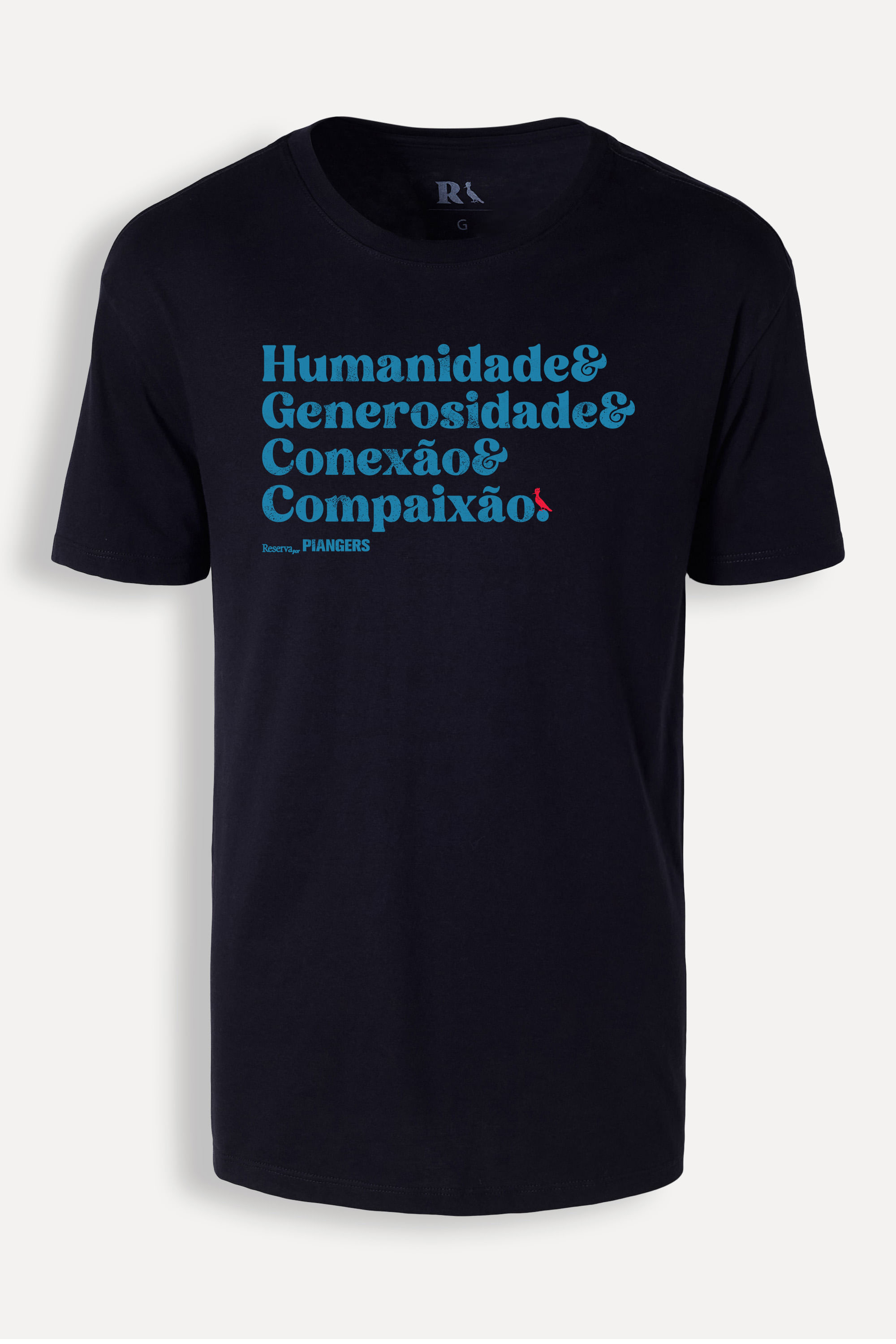 Escolha ser feliz! Conheça a Camiseta Humanidade, da collab Reserva + Piangers! Feita 100% em algodão, possui manga curta, gola redonda e estampa escrito “Humanidade & Generosidade & Conexão & Compaixão”, com a assinatura da collab e nosso pica-pau vermelho. Disponível em três cores, escolha a que melhor combina com seu estilo! Comprando esta peça, você viabiliza cinco pratos de comida através do nosso Programa 1P5P. Camiseta produzida eticamente no Brasil.