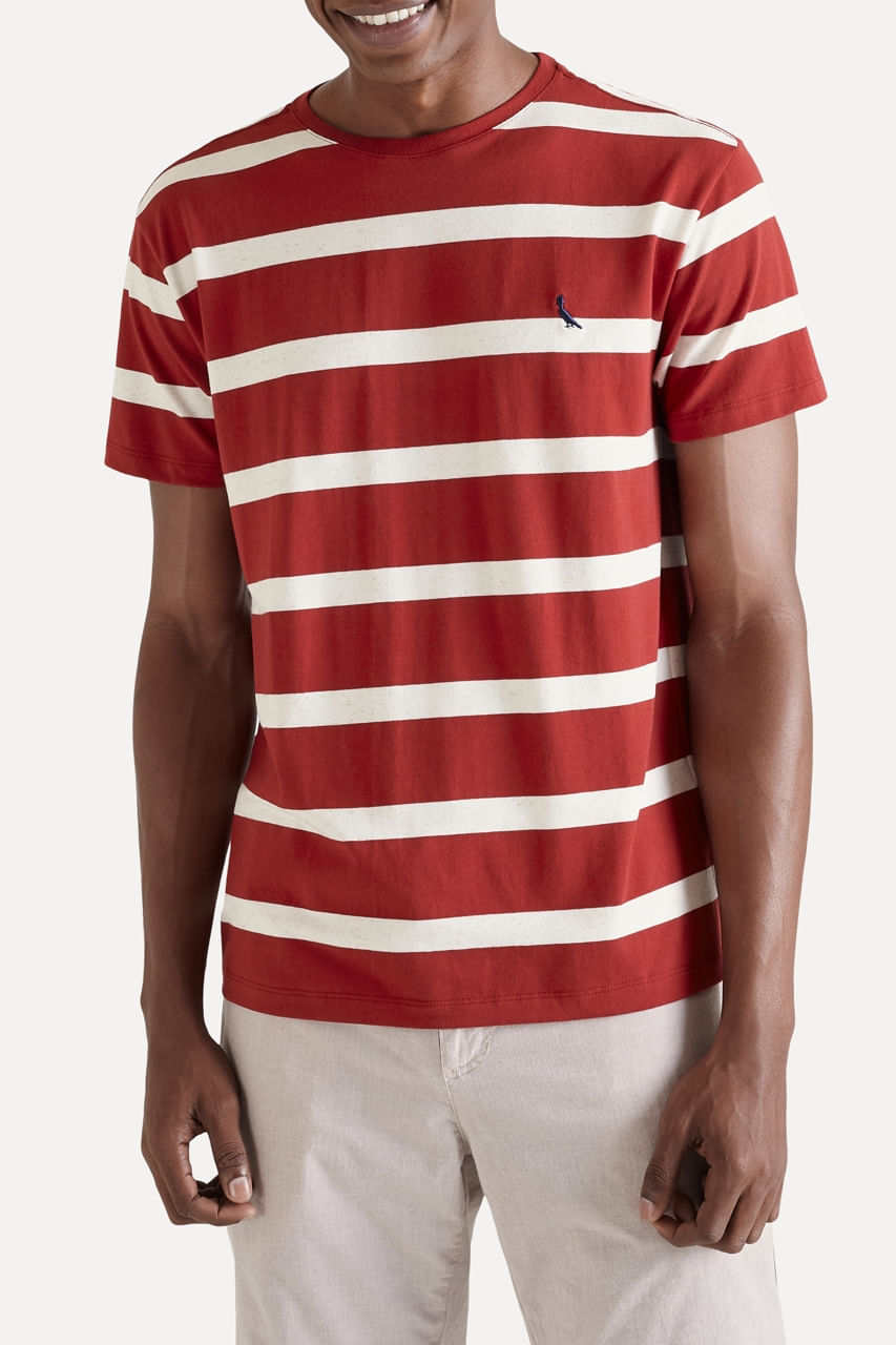 Um churrasquinho com sambinha mais tarde? Camiseta Listrada Joa, pode chegar! Sua composição permite que seus movimentos sejam livres, gerando um conforto sem comparações e ajuste perfeito em todos os formatos de corpo. Desenvolvemos uma camiseta masculina Reserva para você dançar, zoar e até trabalhar num dia mais casual. Listras bonitas assim até te fazem sorrir, fala sério. Produzido eticamente no Brasil. Comprando esta peça, você viabiliza cinco pratos de comida através do nosso programa 1P5P.